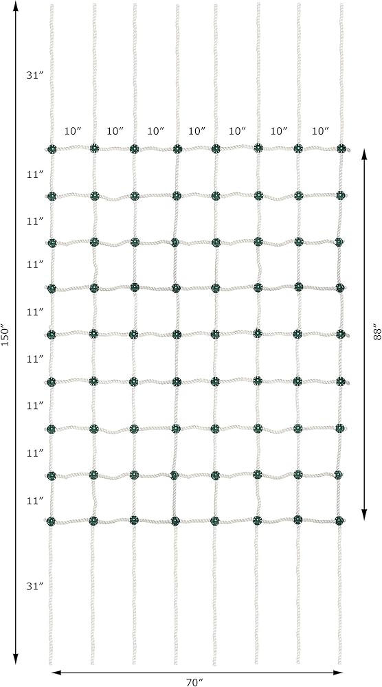 موصلات أقوى وأكثر أمانًا: لا توجد عقد. لا التوصيلات. لا شكر على واجب. تتميز شبكة التسلق شديدة التحمل هذه بمثبتات حصرية تدوم طويلاً، مصنوعة من البلاستيك القوي عالي الكثافة وأجزاء صلبة مقاومة للصدأ.
