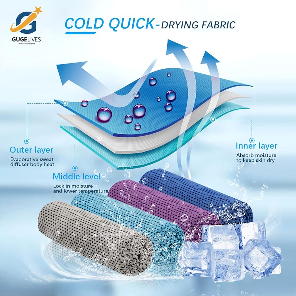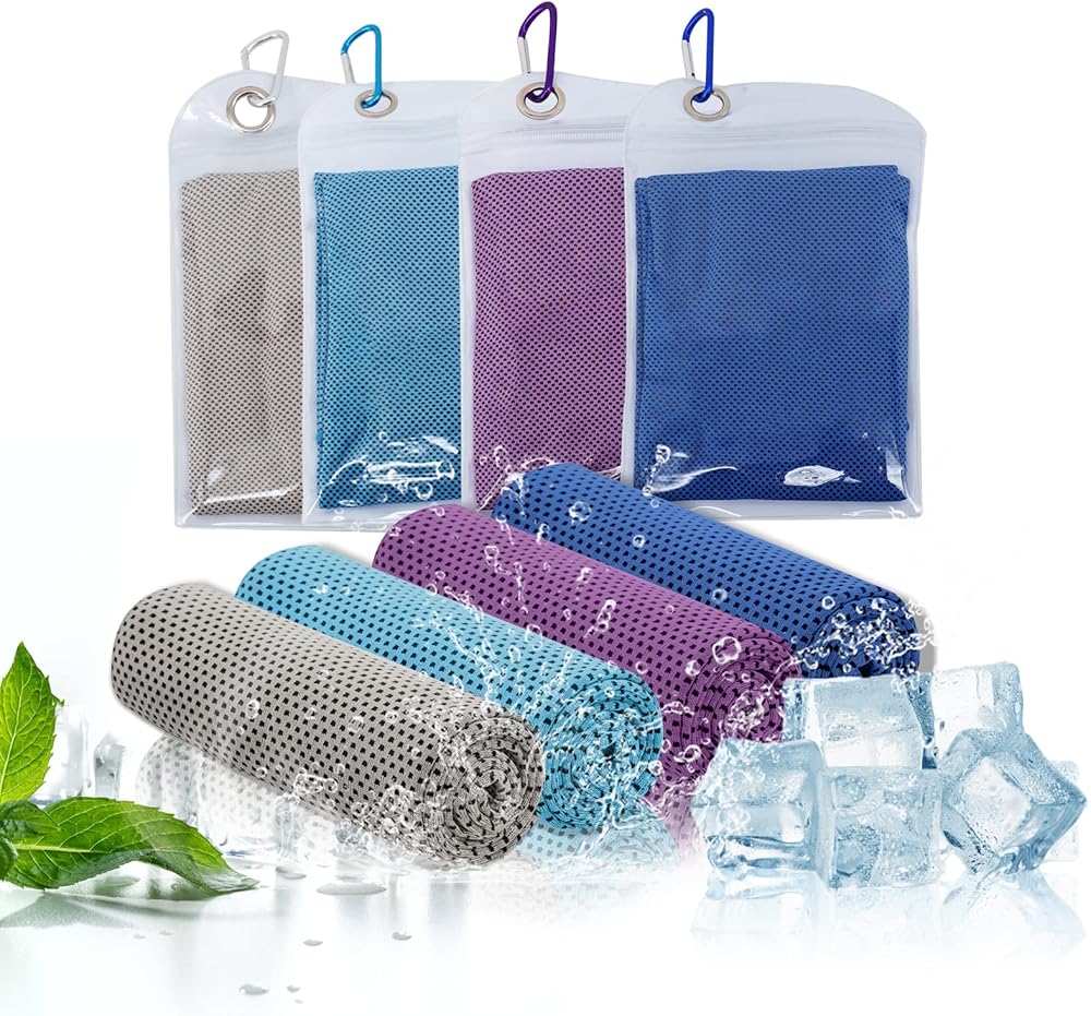 [47 بوصة × 12 بوصة] 4 قطع منشفة تبريد، منشفة ثلج، وشاح ملفوف للرقبة، منشفة باردة من الألياف الدقيقة لليوجا، والسفر، والجولف، وصالة الألعاب الرياضية، واللياقة البدنية، والجري، والتمرين والمزيد من الأنشطة