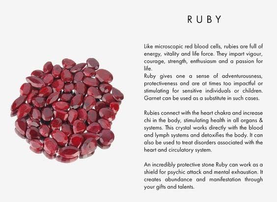 Ruby: - Gives Mental Strength. Due to its association with the Sun, ruby gemstone is aptly called the king of gems, Improves Paternal Relationships, Brings Name and Fame, Wards off the Evils, Commands Authority and Luxury, Rejuvenates Health Conditions, Increases Marital Harmony. ? We work only for handmade Jewelry because it's an art which comes from heart and connect us to people.