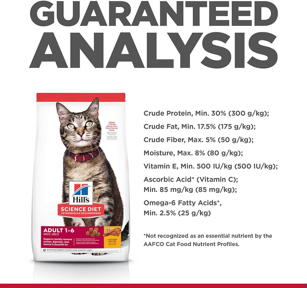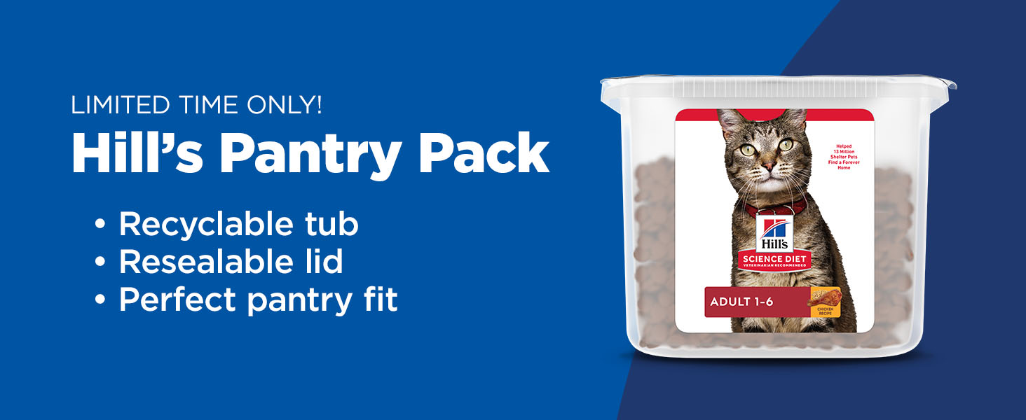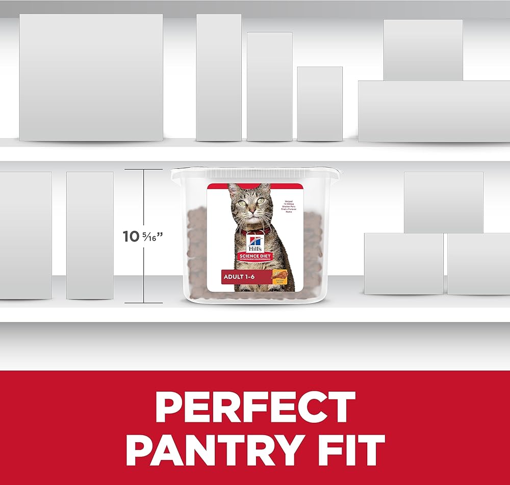 Your adult cat needs a pet food that supports healthy digestion, shiny fur, lean muscles and a healthy immune system. Hill's Science Diet Adult dry cat food is made with high quality, easy to digest ingredients and is specially formulated to fuel the energy needs of cats during the prime of their life. A cat food made with natural ingredients, Hill's Science Diet Adult provides vitamin E plus omega 3 and omega 6 fatty acids to nourish your cat's skin. Packed with high quality protein, this premium cat food also helps your grown cat maintain lean muscles. Additionally, this adult dry cat kibble provides your grown cat with essential taurine and balanced minerals to support heart health, bladder function and kidney function. There's more to love with the new look of Science Diet. Some of our products also have new names, new kibble shapes & new formulas.