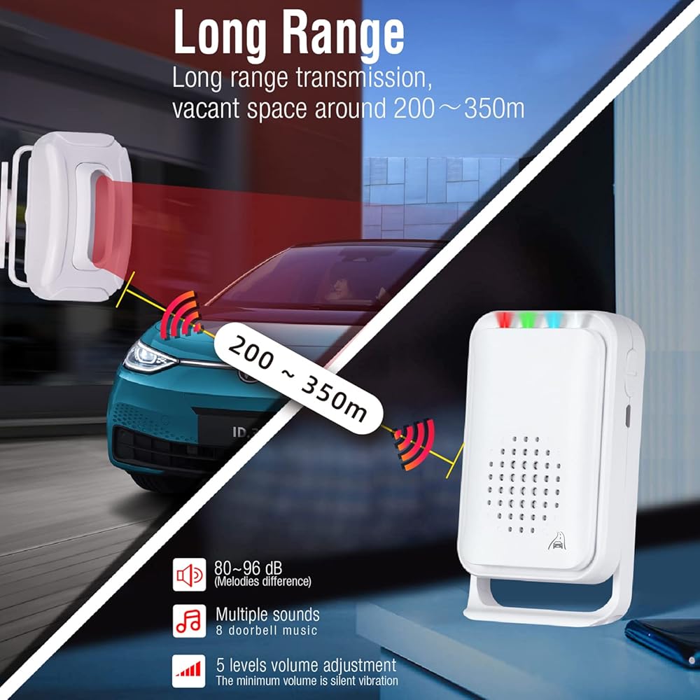 ❤️【Widely Range】Working Range up to 918 feet (280 meters) between receiver and transmitter allowing you to place it a good distance from the receiver to warn you of arrival and departure of family members, unwanted guests or solicitors, or anyone who visits your home or business.