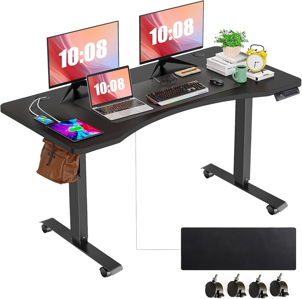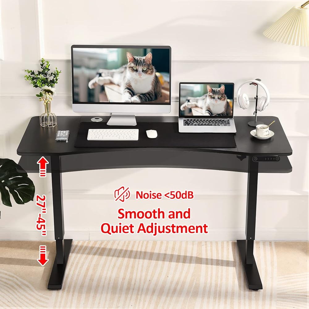 مكتب قائم كهربائي بارتفاع قابل للتعديل مقاس 55 × 24 بوصة، مكتب للوقوف مع أربعة ارتفاعات محددة مسبقًا، سطح مكتب منحني مريح، هيكل مزدوج الشعاع، نطاق رفع 27 بوصة - 45 بوصة (بني)