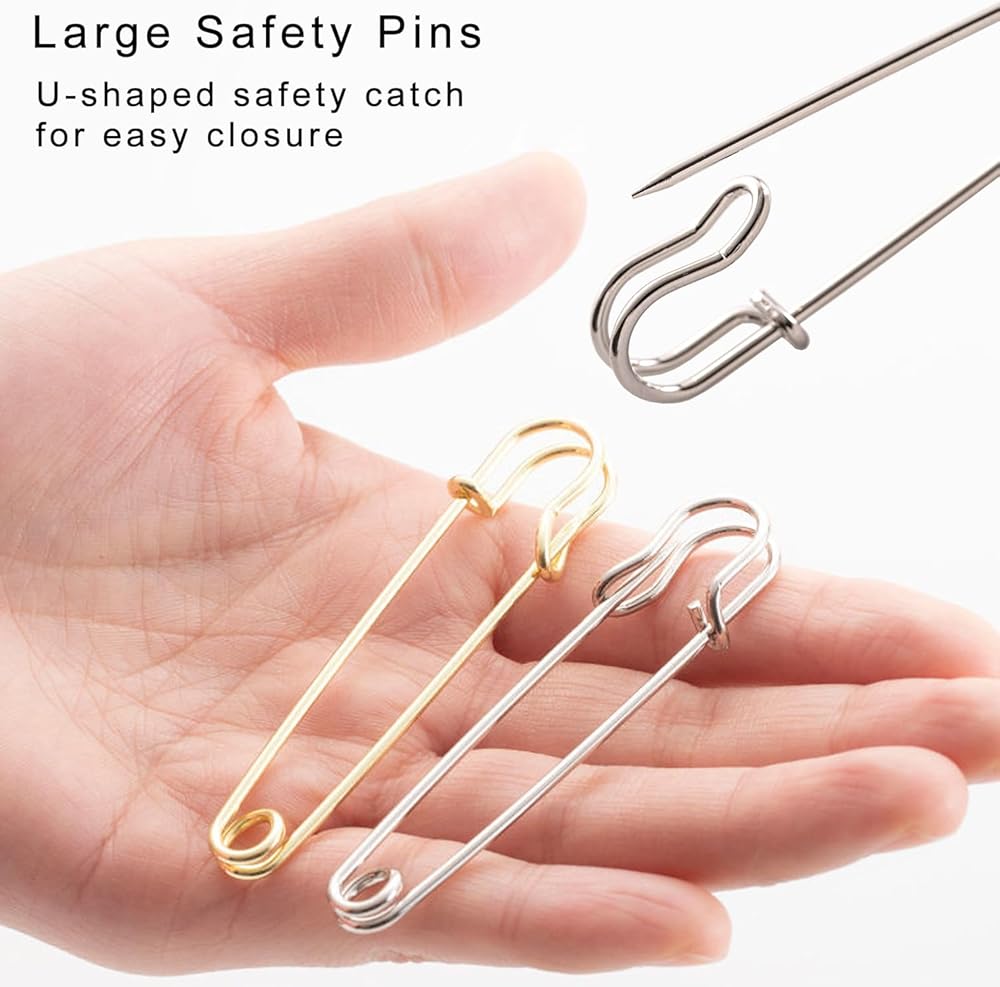 Stylish and Versatile Applications: Beyond functionality, our safety pins redefine fashion and practicality. Unleash your creativity with these extra-large pins—perfect for fashion statements, costume crafting, key rings, or jewelry making. Seamlessly transition from securing laundry bags and blankets to adding a touch of style to your wardrobe.