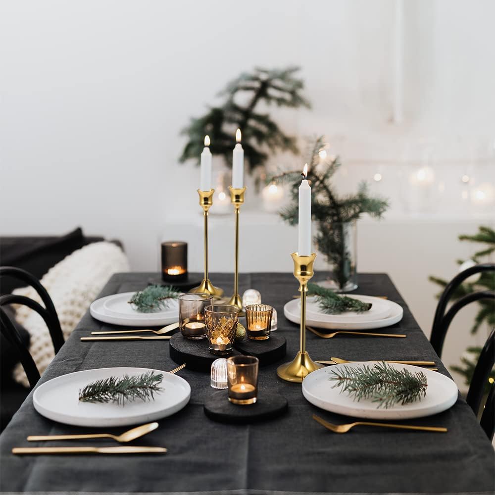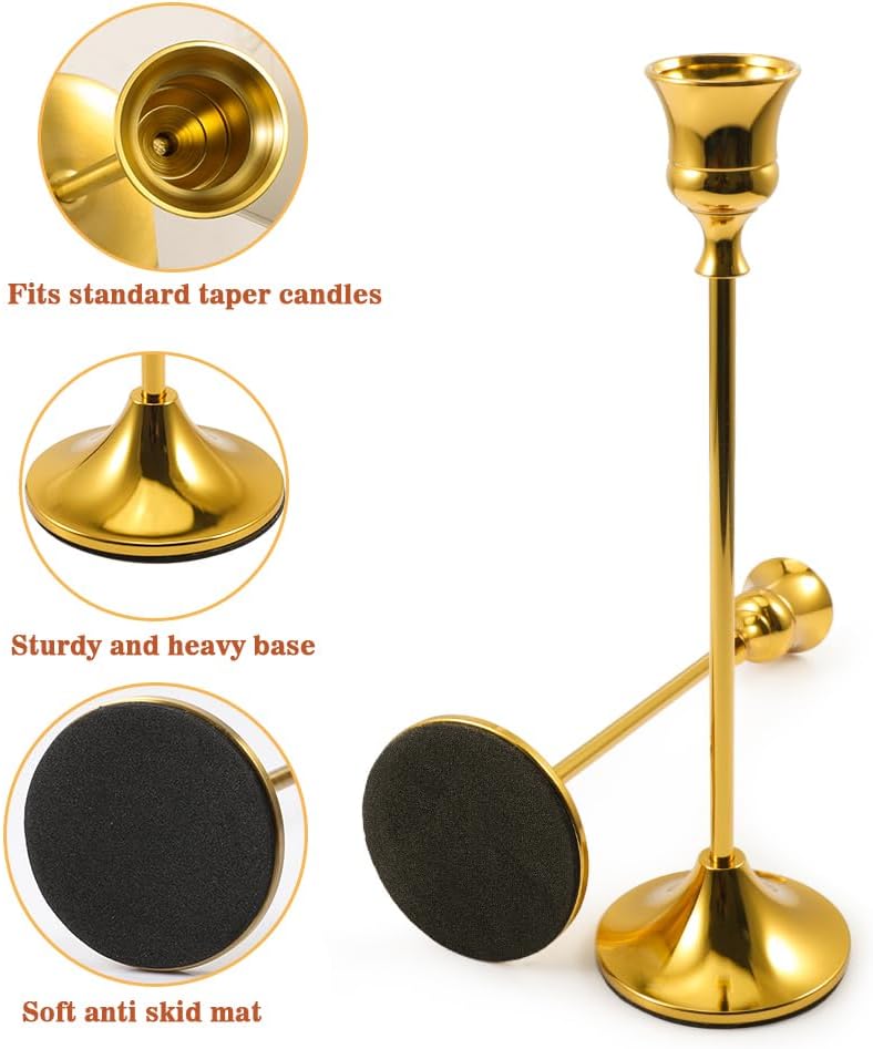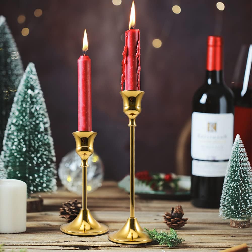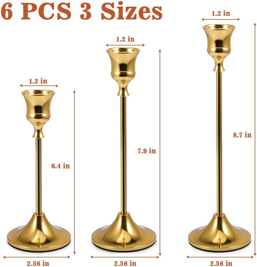 مجموعة من 6 حاملات شمعدان: مجموعة عصي الشموع تأتي في 3 أطوال (صغير - 2.4 × 6.3 بوصة؛ متوسط - 2.4 × 7.1 بوصة وطويل - 2.4 × 8.3 بوصة) لكل وحدة من وحدتين. تناسب الشموع ذات الحجم القياسي والشموع المستدقة LED. (الشموع غير متضمنة).