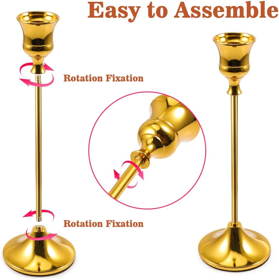 تصميم معدني أوروبي قديم: هيكل معدني بطبقة نهائية من النحاس الذهبي الكلاسيكي، حاملات الشموع هذه تتميز بلمسة نهائية جميلة وأنيقة ولكنها مبهرة. تختلف في ارتفاع ضوء الشموع مما يسهل إضاءة الطاولة وخلق جو رومانسي.