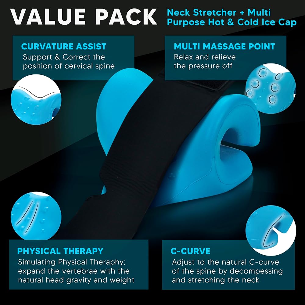 حزمة قيمة: تأتي كل عبوة مع جهاز تمديد الرقبة ووسادة جل علاجية ساخنة وباردة متعددة الأغراض. لقد تم تصميم حزمة القيمة المبتكرة الخاصة بنا بدقة لمعالجة المضايقات التي يعاني منها الأفراد الذين يعانون من آلام الرقبة والكتف والصداع والصداع النصفي وغيرها من المضايقات الجسدية المختلفة. توفر مجموعتنا راحة متعددة الاستخدامات، وتعالج مناطق متعددة من عدم الراحة لتعزيز الرفاهية.