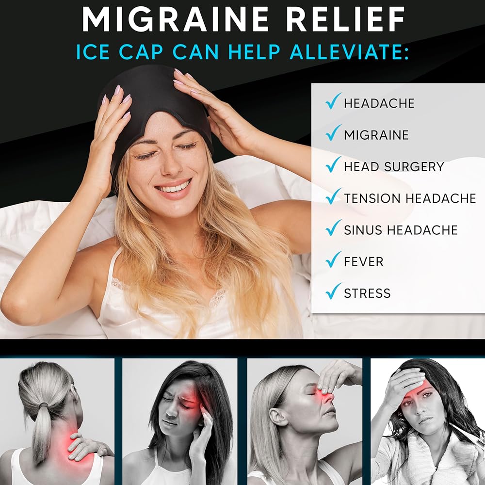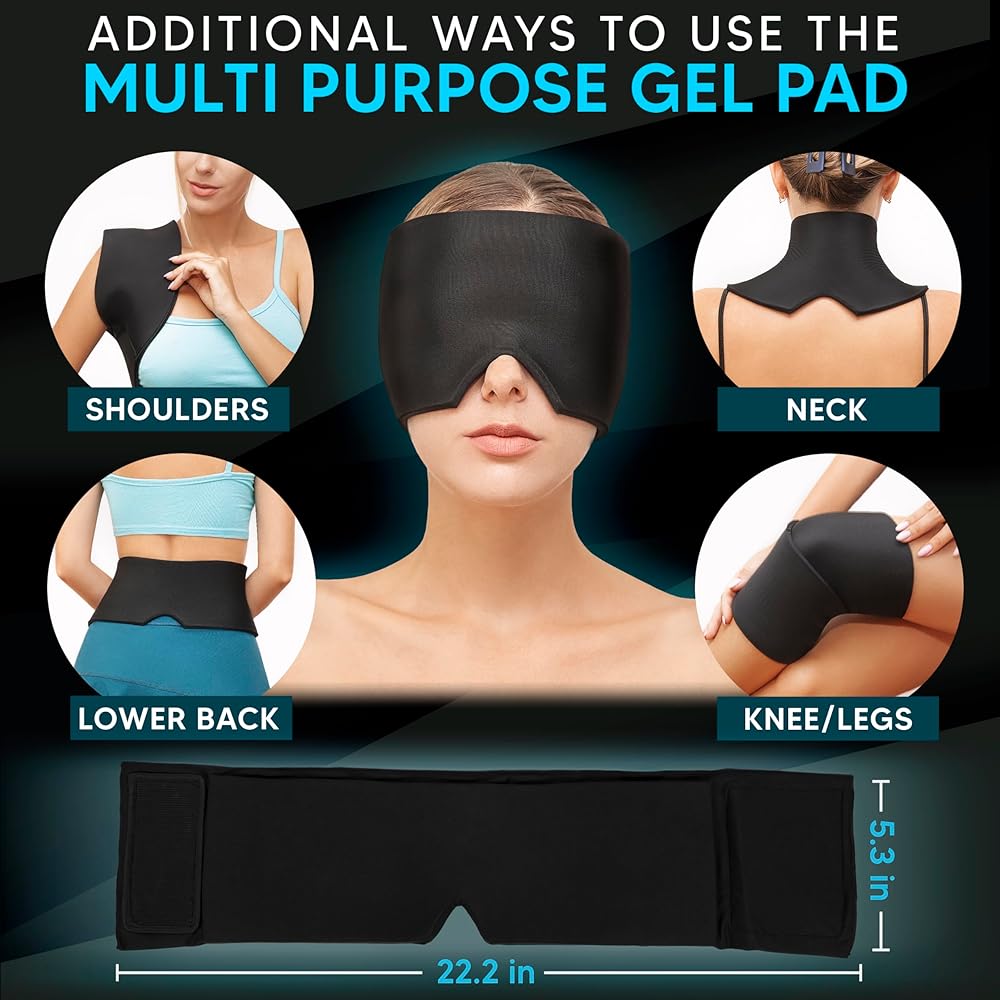 غطاء قابل للتعديل لتخفيف الصداع النصفي: هذا الغطاء البارد القابل للتمدد 360 درجة للصداع النصفي يطبق ضغطًا معتدلًا على رأسك، مما يخلق بيئة مظلمة ومقاومة للضوء تخفف من التوتر وصداع الجيوب الأنفية بشكل أكثر فعالية من الدواء. يعمل الضغط اللطيف والبرودة المهدئة معًا للتخفيف من حدة الصداع النصفي بشكل أسرع.