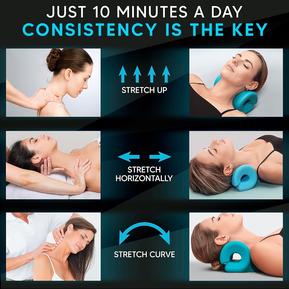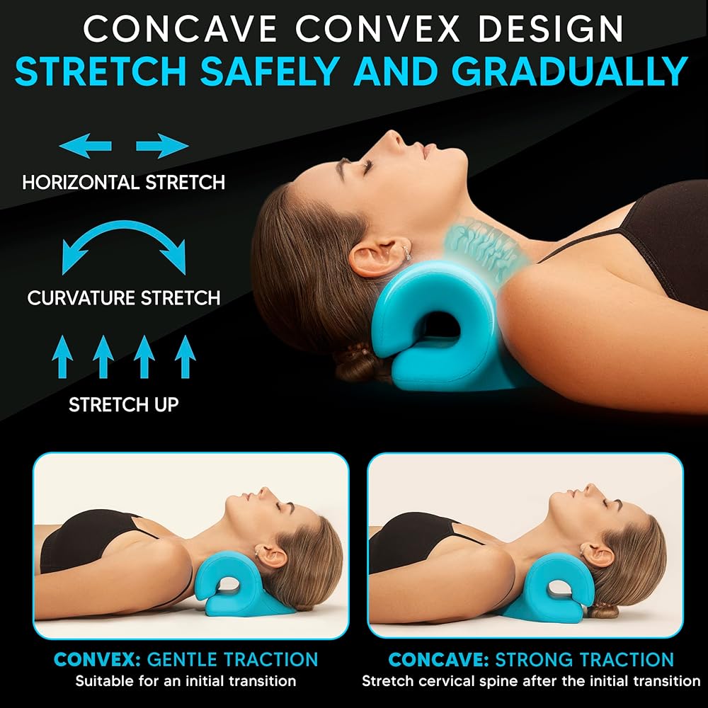 نقالة الرقبة لتخفيف آلام الرقبة والكتف: جهاز جر عنق الرحم المتقدم. حل بسيط وفعال. يأتي جهاز استرخاء الرقبة والكتف iBYWM مع غطاء لتخفيف الصداع النصفي مصمم لتخفيف آلام الرقبة والكتف من خلال استهداف الحدبة الموجودة في الجزء الخلفي من رقبتك لتحسين محاذاة العمود الفقري العنقي. يقدم جهاز تمديد الرقبة هذا حلاً للعلاج الطبيعي في المنزل، مما يجعله خيارًا فعالاً من حيث التكلفة لأولئك الذين يعانون من آلام الرقبة أو الإصابة. إنه سهل الاستخدام و