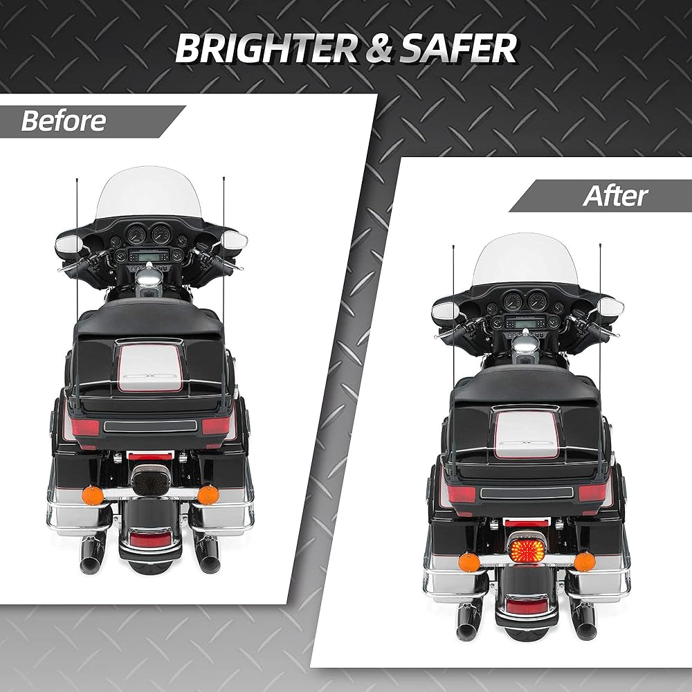 الكل في واحد: ضوء خلفي STEJONG، مع رقائق LED عالية الكثافة ومؤشر عرض فائق السطوع، ضوء تشغيل/ضوء فرامل/ضوء إشارة الانعطاف (انعطف يسارًا/يمينًا)، ضوء لوحة ترخيص أبيض إضافي، جميع الإضاءة مدمجة، مما يوفر لك تجربة قيادة أفضل .