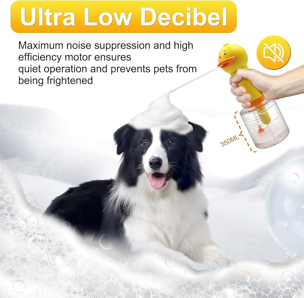 【ديسيبل منخفض للغاية】يمكن لموزع صابون الكلاب زيادة الحد من الضوضاء، ومحرك عالي الكفاءة لضمان التشغيل الهادئ، لمنع الحيوانات الأليفة من الخوف، فهو على شكل بطة لطيفة، مشهور على نطاق واسع، يمنح حيوانك الأليف تجربة استحمام ممتعة، لا غنى عنه لمتعة الاستحمام.