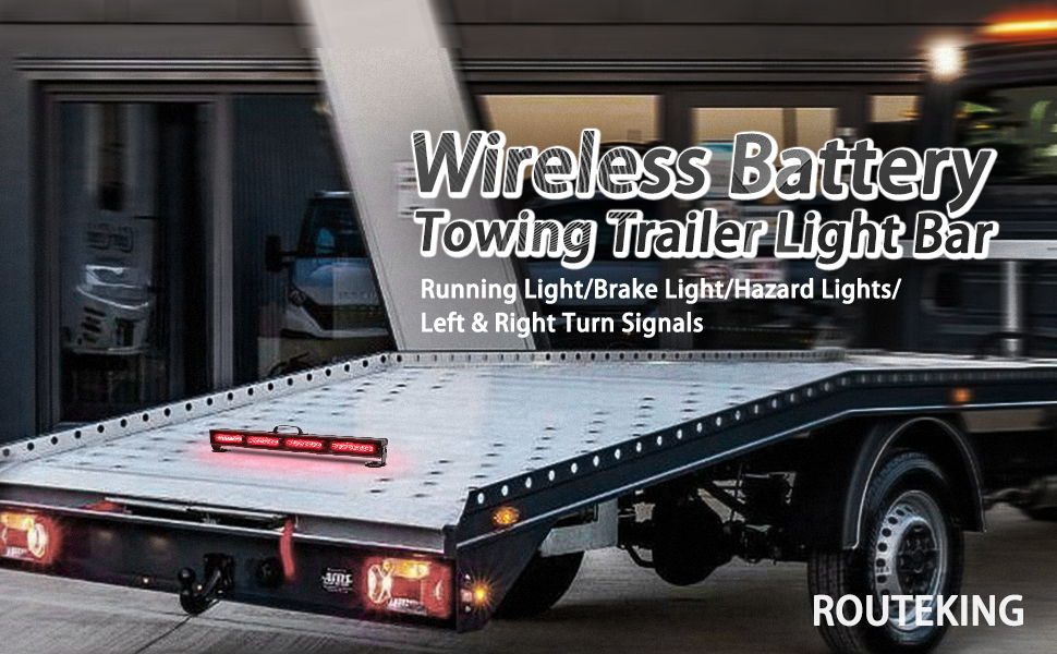شريط إضاءة LED لاسلكي لمقطورة السحب مع جهاز إرسال دائري 7 دبابيس، قاعدة مغناطيسية قوية، شريط ضوء سحب للطوارئ لإشارة الفرامل/الانعطاف للسيارات ذات حواجز الطرق، بطارية قابلة لإعادة الشحن، 23 بوصة