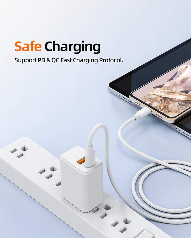 الإخراج: مخرج موصل USB-C 20 فولت/1.5 أمبير 30 وات (كحد أقصى)، الإدخال: 100-240 فولت. (تصميم بمنفذي شحن، وهو مناسب لك لاستخدام كابل الشحن الذي لديك لشحن جميع الأجهزة الذكية بقوة تصل إلى 30 وات)