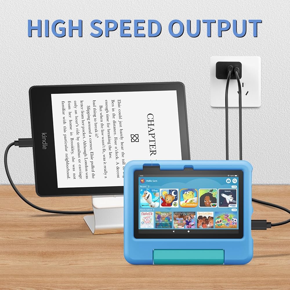 15W Fast Wall Charger for Amzon Kindle Fire with 10FT USB-C&Micro USB Cable for Charging Kindle Paperwhite 11th gen, All-new Fire HD 7 8 10 Plus Tablet, Kids Pro, Kids Edition
