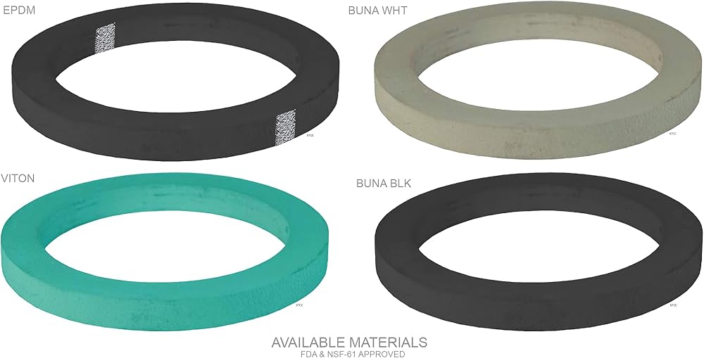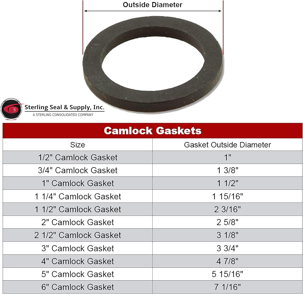 Sterling Seal & Supply proudly offers a full line of CAMLOCK gaskets in multiple quantity packs and materials for Amazon. Lathe cut gaskets far excel vs die cut, water cut or flash cutting for CAMLOCK style gaskets. Our manufacturer specializes in producing cylindrical rubber tubes with precision ground surface finishes. Initially, the tubing is vulcanized in a high-pressure autoclave, which uses a precision mandrel to form the inside diameter. Once the tube is cured, the product is ground on specialized lathe-type grinding machines. This operation finalizes the outside diameter (OD) or wall thickness to the proper specification. The desired cut thickness is achieved by using a specialized carbide cutting tool on computer controlled automatic cutting machines. Where are these gaskets typically used? Camlock gaskets are used for cam and groove couplings. A cam and groove coupling, also called a Camlock fitting, is a form of hose coupling. This kind of coupling is popular because it is a simple and reliable means of connecting and disconnecting hoses quickly and without tools. We now stock for Amazon White Buna FDA, Black Buna, Green FKM-Viton, and black EPDM; All quantities readily available for 24 hour immediate shipping.