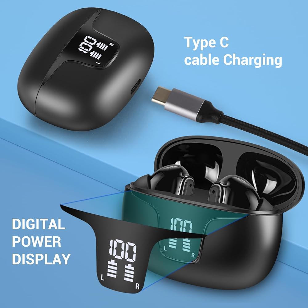 بطارية طويلة استمتع بعمر الموسيقى: تحتوي سماعات الأذن اللاسلكية بلوتوث XY19 على حجرة شحن 350 مللي أمبير في الساعة. تتمتع كل سماعة أذن بسعة 30 مللي أمبير في الساعة، مما يمنحك ما يصل إلى 6 ساعات من وقت الموسيقى وما يصل إلى 5 ساعات من وقت التحدث. يمكن أن يصل وقت الاستعداد لعلبة الشحن إلى 140 ساعة. تدعم علبة سماعة الرأس اللاسلكية الشحن السلكي باستخدام كابل من النوع C، وتوفر شاشة LED الرقمية حالة البطارية في الوقت الفعلي لكلا السماعتين. راقب مستوى البطارية في الوقت الفعلي ولا تقلق أبدًا بشأن نفاد الطاقة مرة أخرى.