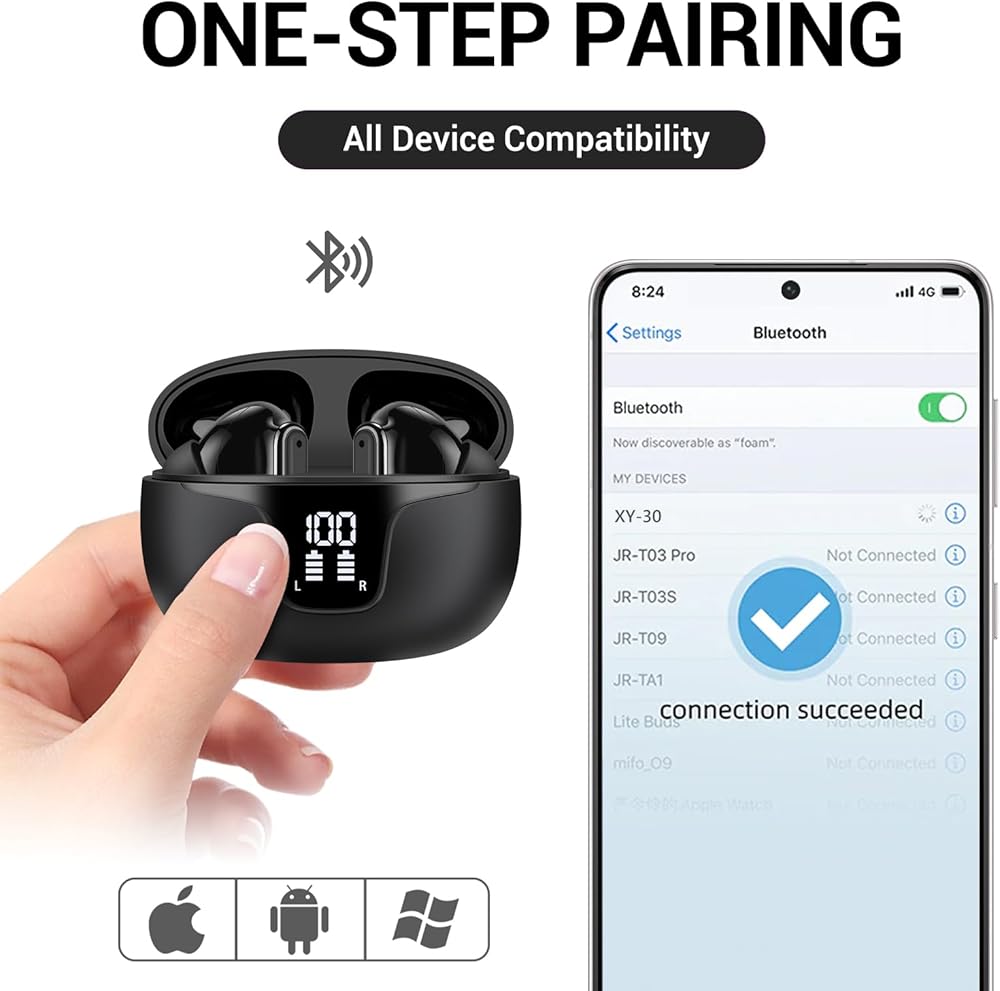 أحدث التقنيات والاتصال المستقر: تتميز سماعات الأذن اللاسلكية بأحدث إصدار بلوتوث 5.3 مع استهلاك أقل للطاقة ونطاق أكبر. يمكن توصيل سماعات الأذن تلقائيًا بآخر جهاز متصل بعد توصيلها يدويًا في المرة الأولى بنجاح. تحتوي سماعات الأذن بلوتوث هذه على ميكروفون مدمج. يستخدم مع مساعد صوتي، حرر يديك من الآن فصاعدًا.