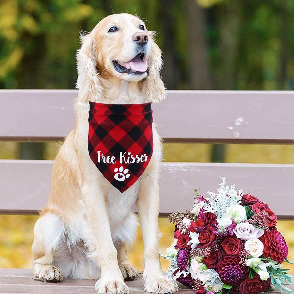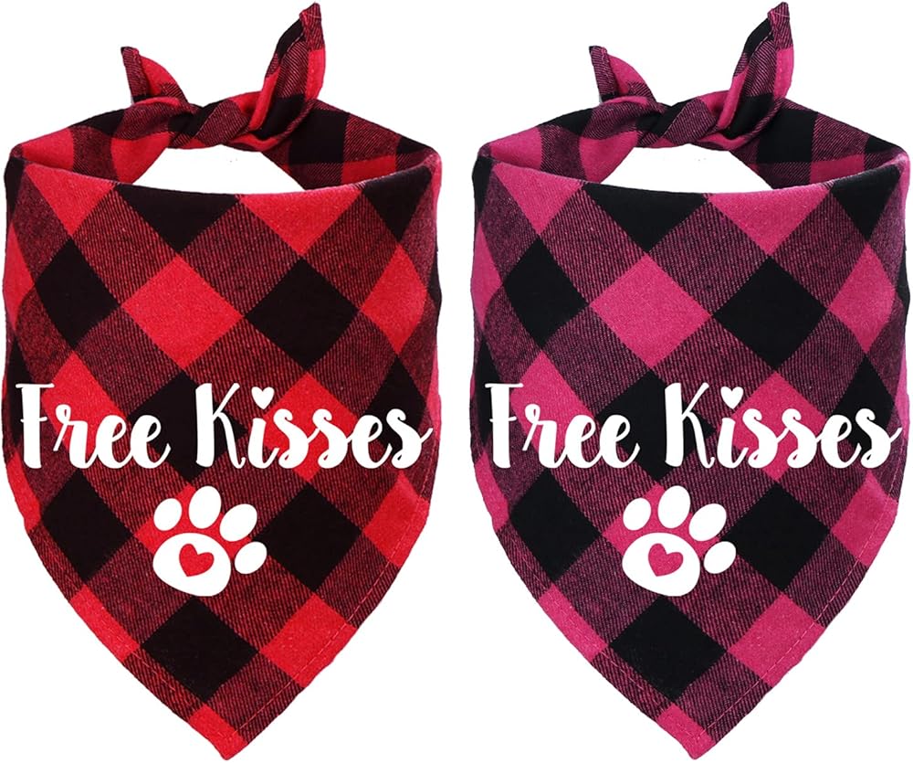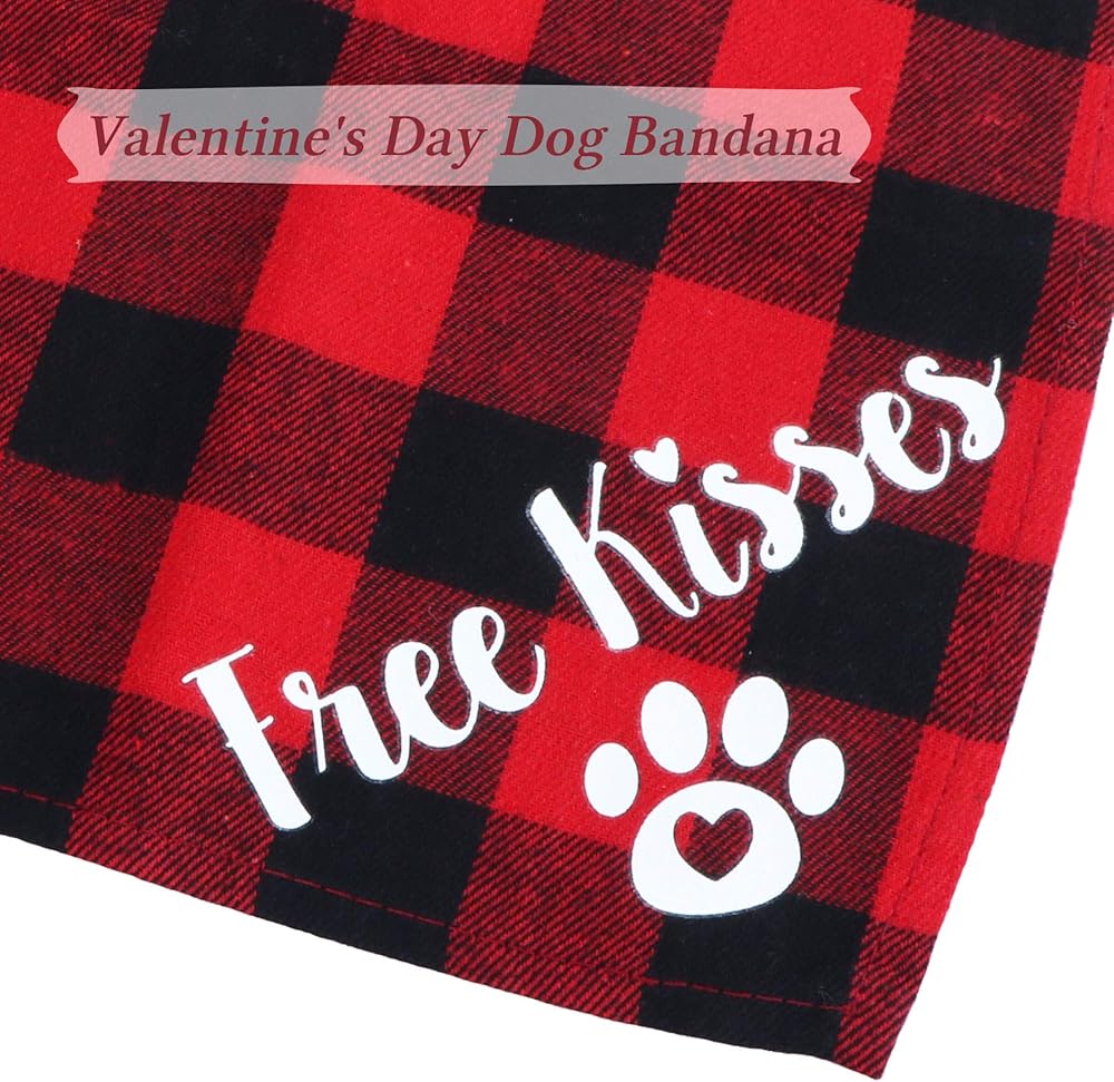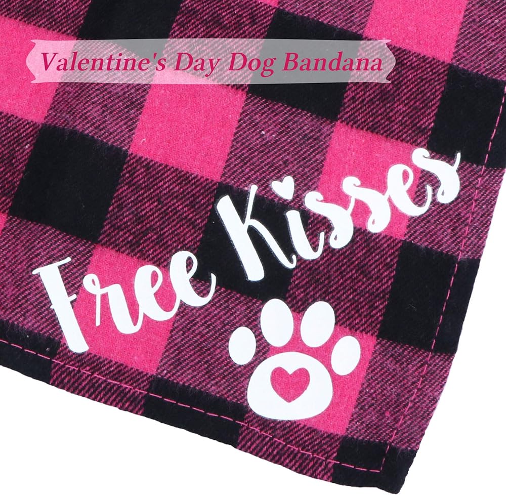 STMK 2 Pack Valentine's Day Plaid Dog Bandana, Free Kisses Plaid Dog Puppy Bandana Triangle Scarf for Dog Puppy Valentine's Day Wedding Holiday Party Supplies