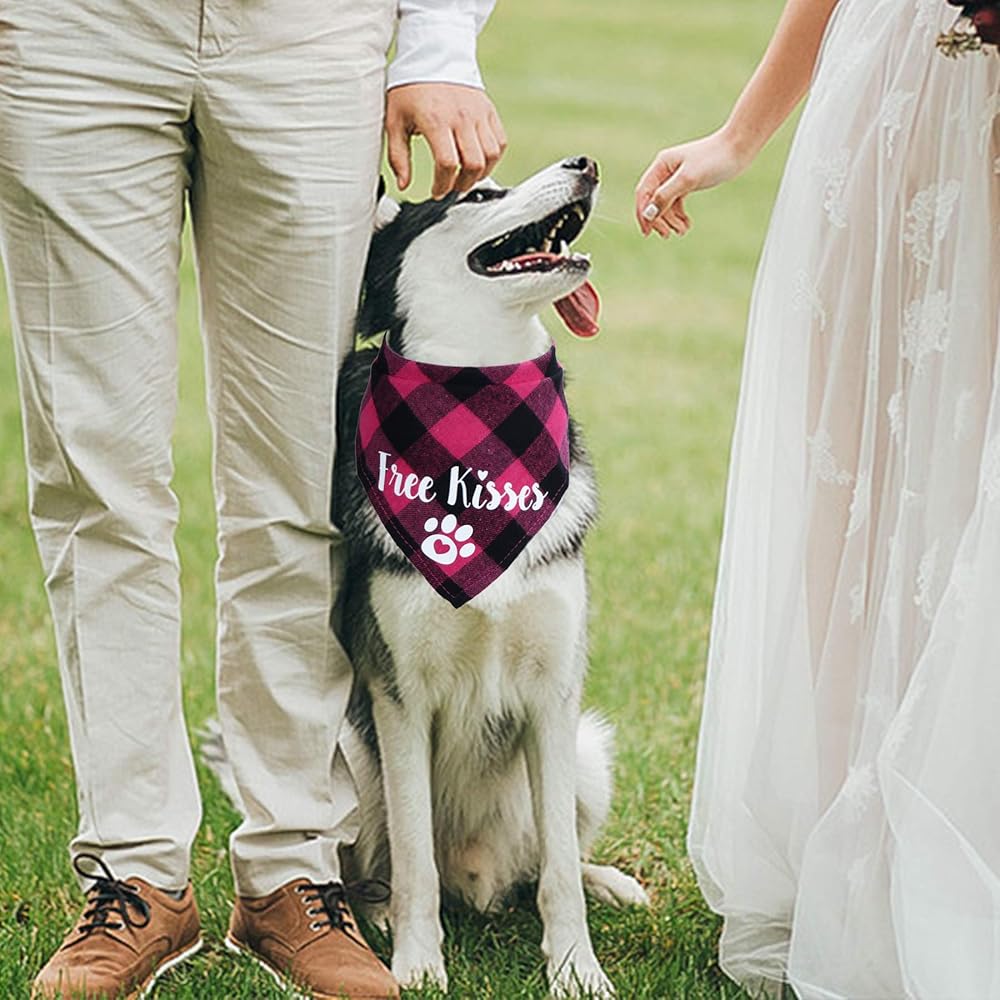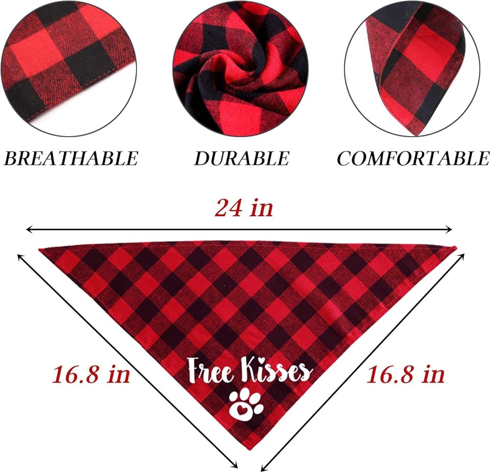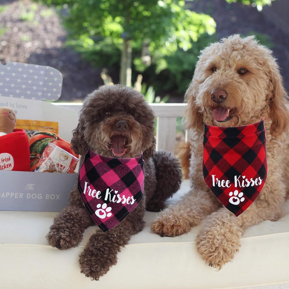 STMK 2 Pack Valentine's Day Plaid Dog Bandana, Free Kisses Plaid Dog Puppy Bandana Triangle Scarf for Dog Puppy Valentine's Day Wedding Holiday Party Supplies