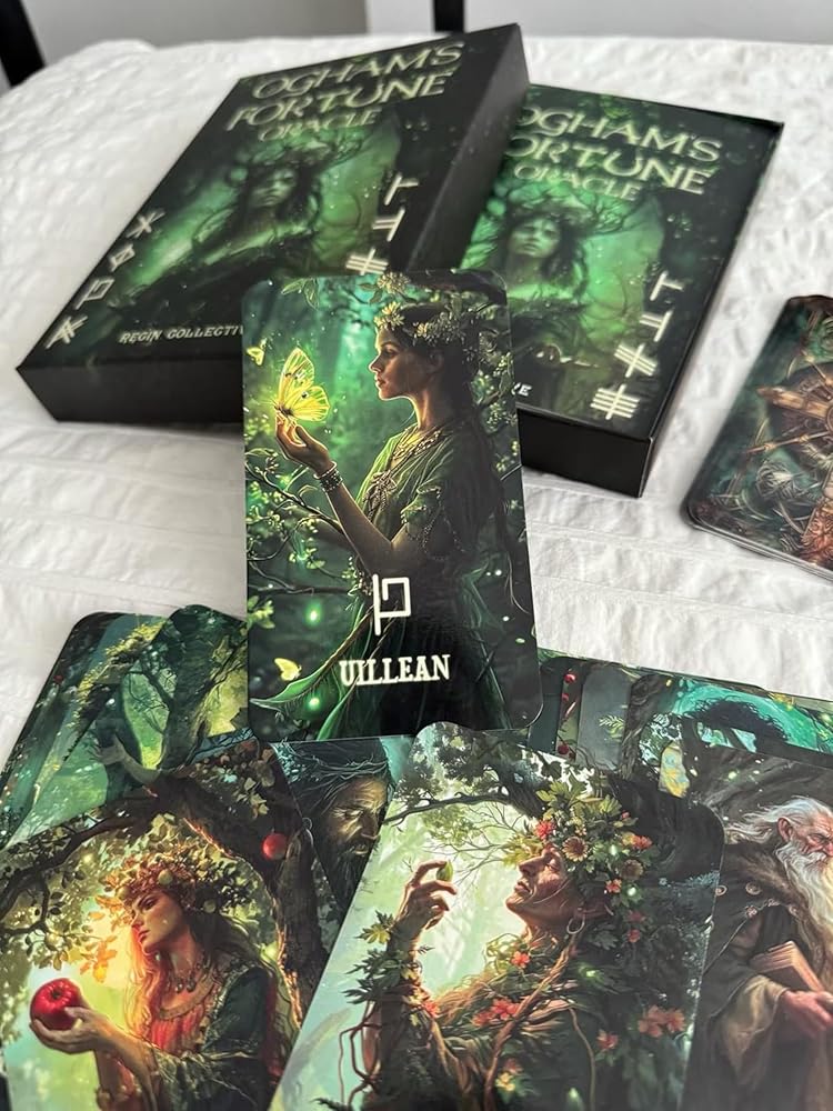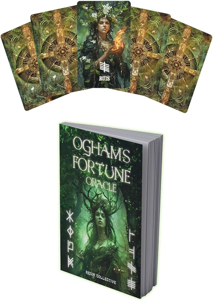 نقدم لكم "Ogham's Fortune Oracle" - رحلة غامضة عبر أبجدية Ogham القديمة، حيث تحمل كل بطاقة من البطاقات الـ 25 نبوءة فريدة، تدعوك لفتح أسرار مستقبلك. تجمع هذه المجموعة الرائعة بين الحكمة التقليدية لشخصيات Ogham العشرين مع إضافة حديثة لـ 5 فورفيدا، مما يوسع عوالم العرافة ويعزز توجيهك البديهي.