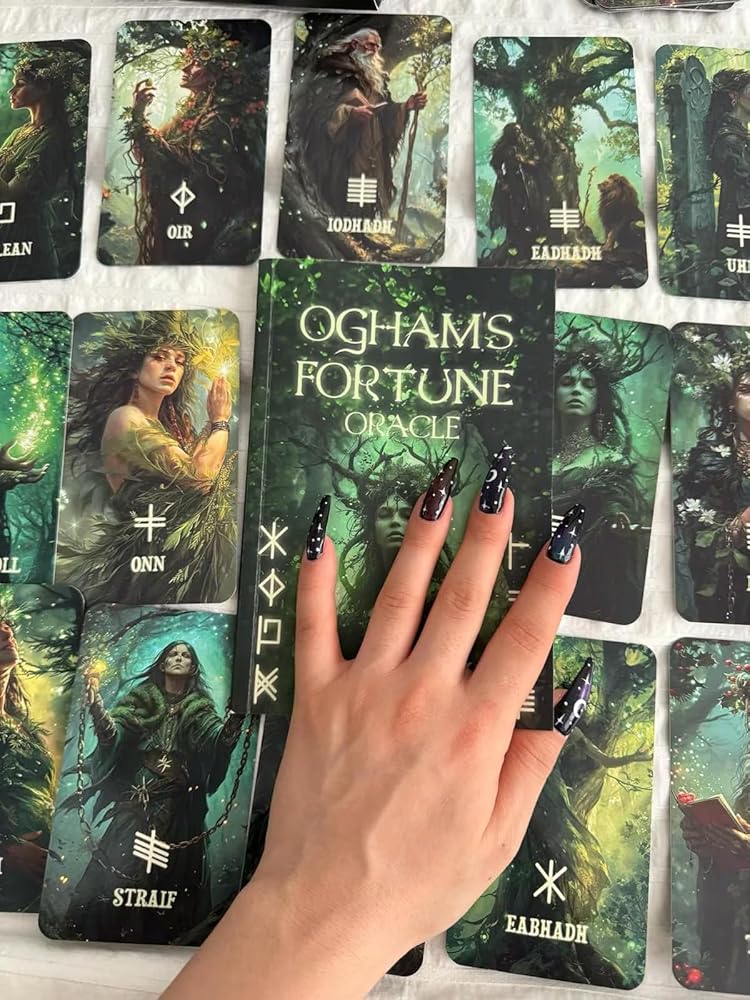 نص أوغام، وهو أبجدية كاهنية مقدسة، غارق في التاريخ والتصوف. يجسد كل حرف طاقة أو رسالة معينة، تربطك بالحكمة القديمة لأسلاف سلتيك. "Ogham's Fortune Oracle" يتجاوز الزمن، ويقدم جسرًا إلى الماضي ومفتاحًا لمستقبلك. مع كل بطاقة، ستتعمق أكثر في معرفة الأوغام، وكشف الألغاز التي تم الهمس بها عبر العصور.