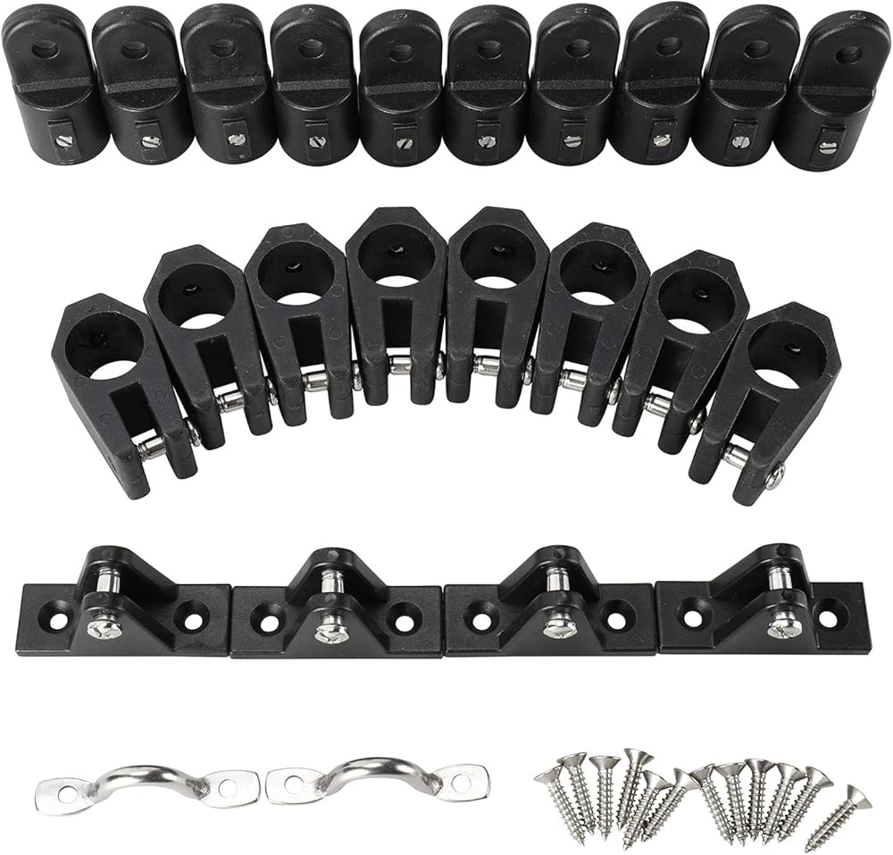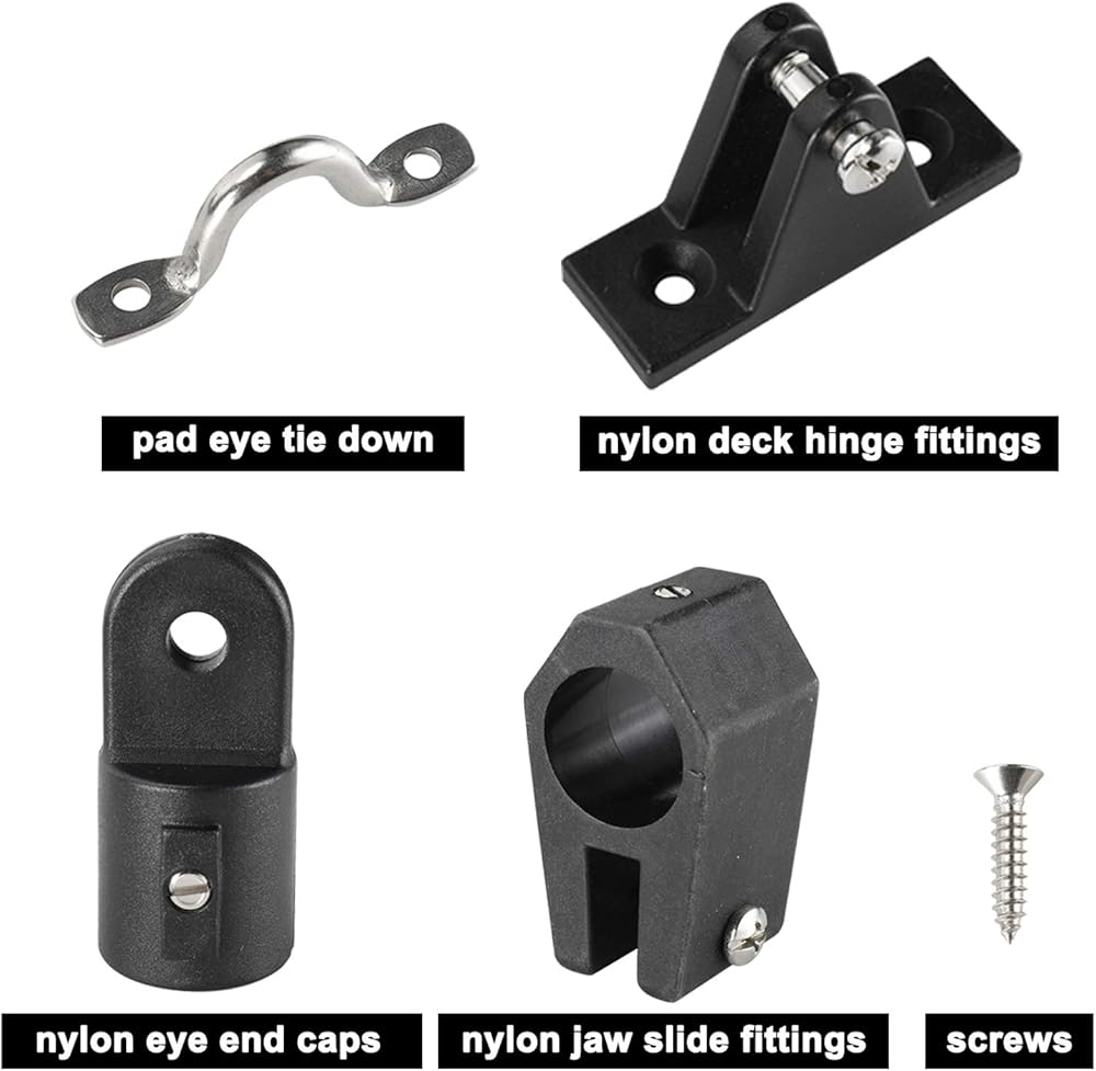 • Package Includes : 10 pcs nylon eye end caps, 8 pcs nylon jaw slide fittings, 4 pcs nylon deck hinge fittings, and 2 pcs pad eye tie down with 12 pcs screws;