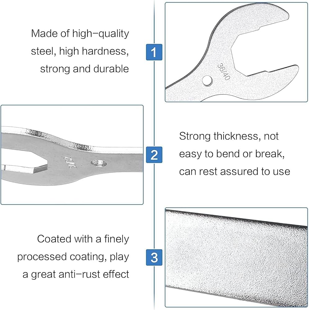 These cone wrenches are designed for the home mechanic or occasional user. They're made of thin steel and are nickel plated and heat treated for long use. Available in four popular sizes 30 32 36 40mm. Their small size makes them ideal to carry along for quick repairs.