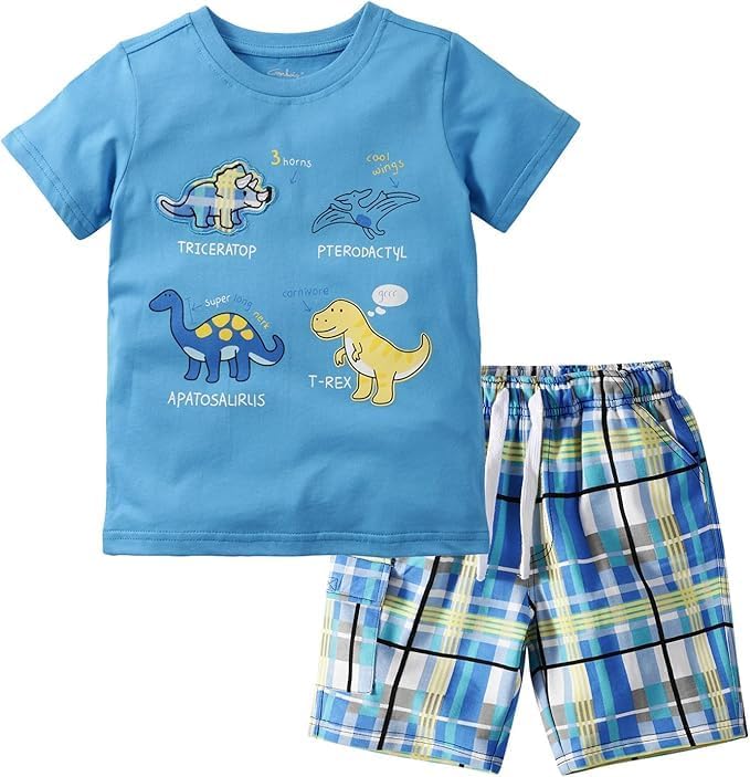 【مواد مريحة】مجموعة الملابس الصيفية للأولاد لدينا مصنوعة من نسيج عالي الجودة مسامي، مع لمسة ناعمة وصديقة للبشرة. القماش خفيف الوزن ومناسب للارتداء في الصيف.
