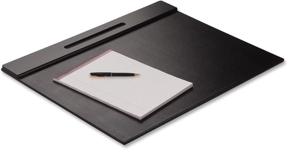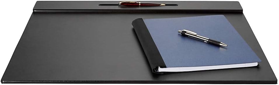 Desk mat offers a 24- by 17 5/8-inch writing surface. Solid wood pencil ledge.