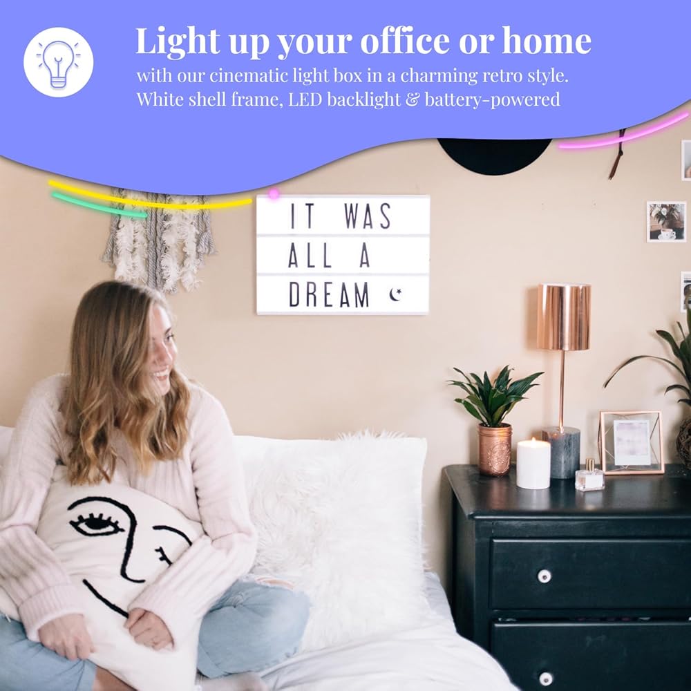 ⚡ تعد لوحة رسائل LED المستوحاة من حروف السينما القديمة هي الوسيلة المثالية لنقل اقتباساتك التحفيزية أو التعبير عن مشاعرك أو مجرد إضافة جميلة كعلامات مضيئة لغرفة النوم.