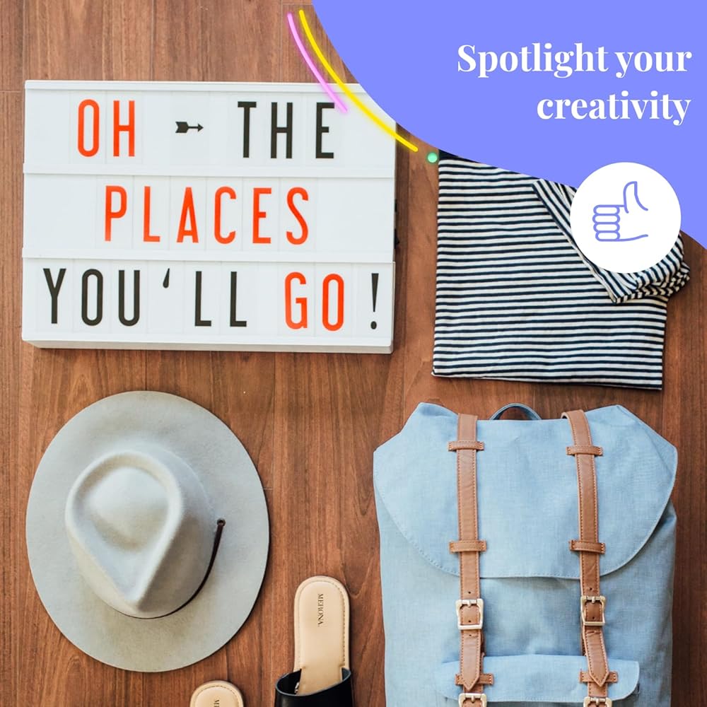📦 يمكن تعليق الصندوق المضيء المحمول بسهولة على الحائط أو استخدامه كعلامة سرادق على سطح الطاولة! علاوة على ذلك، يمكنك تخزين الحروف غير المستخدمة بشكل مريح في الجزء الخلفي من لوحة الحروف المضيئة