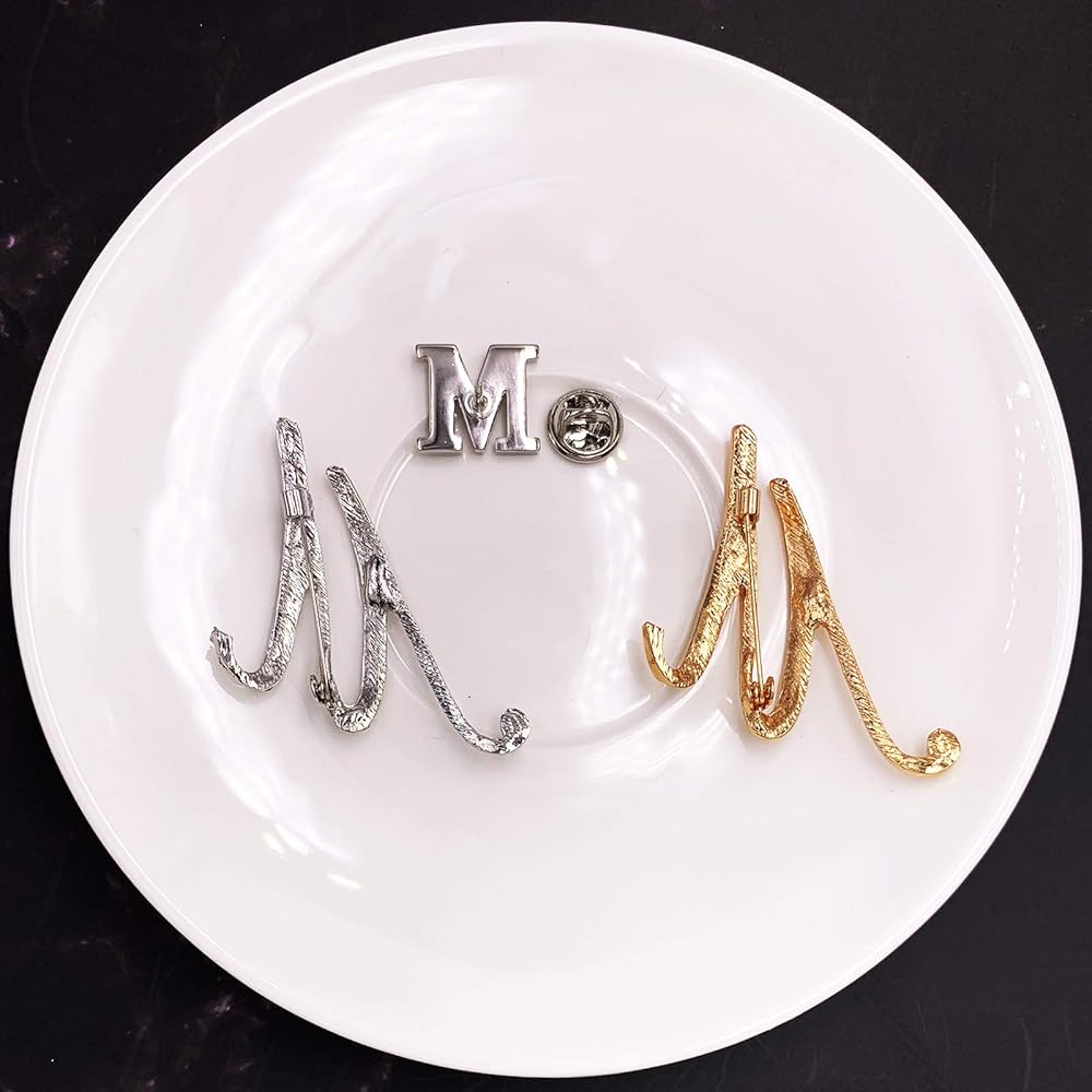 المواد: مطلي بالفضة والذهبي + كريستال شفاف + دبوس معدني صغير لطية صدر السترة