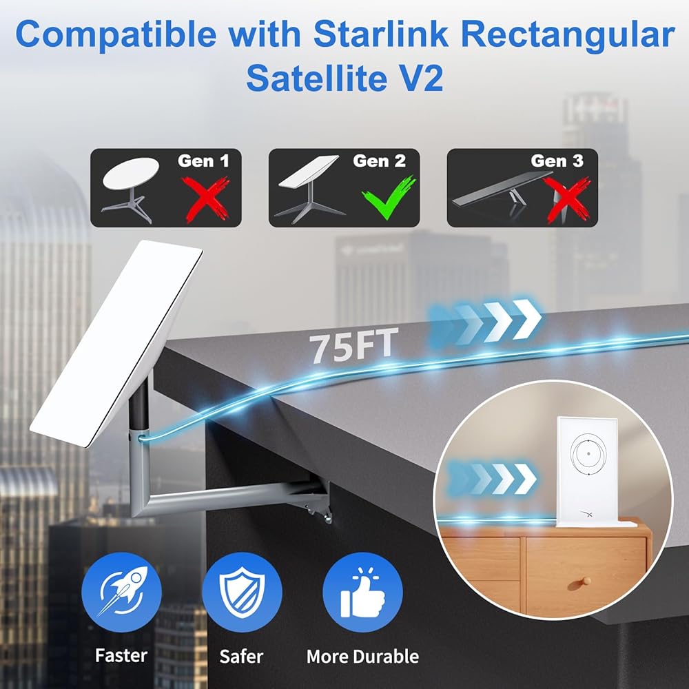 • Choose 75ft Starlink cable lengths, offering unmatched versatility to accommodate various installation needs and scenarios. Whether for home or outdoor use, our cables are designed to meet your specific requirements.