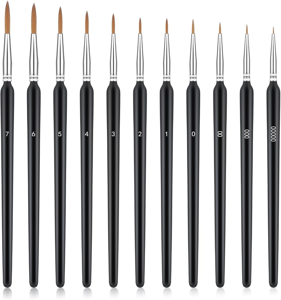 11 قطعة من فرش الطلاء المصغرة، فرشاة طلاء ذات أطراف دقيقة مع مقابض مريحة، فرش طلاء تفصيلية للأكريليك، والألوان المائية، والنماذج، والحرف اليدوية