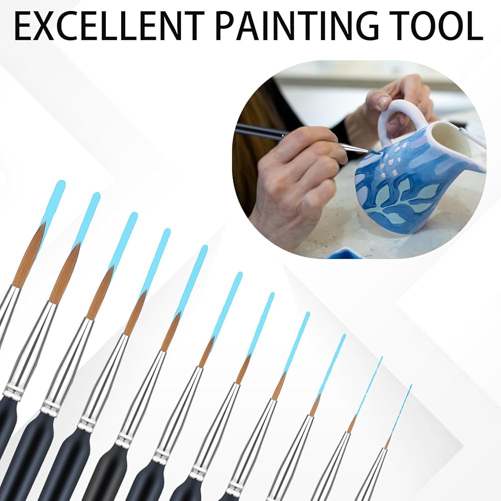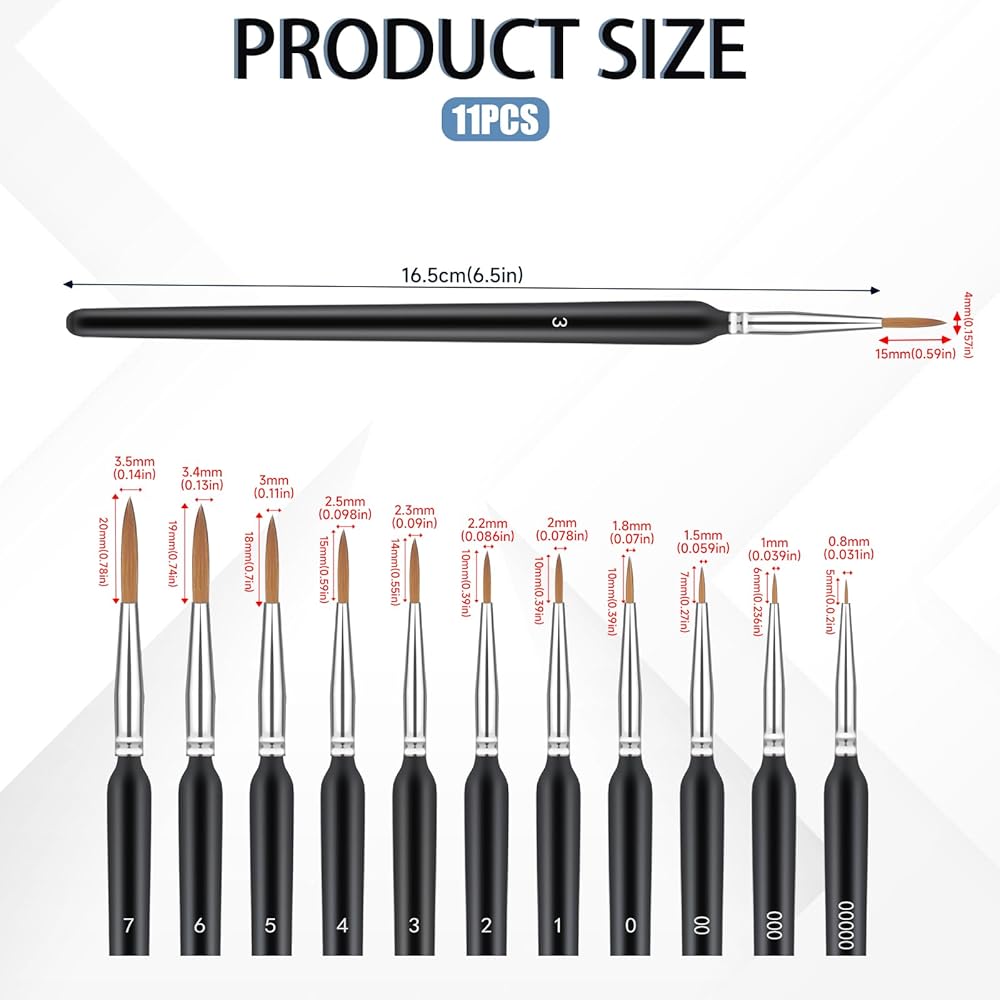 • 【Value Pack】The miniature painting brushes has 11 tips with different thicknesses, which can meet all kinds of needs and allow you to do fine details and artistic painting.