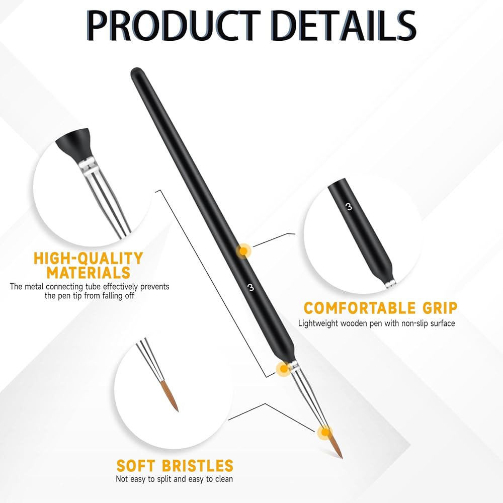 • 【Reliable Material】The detail brush is made of high-quality materials, with soft bristles, easy absorption, orderly stacking, firm handle without shaking and easy to hold.