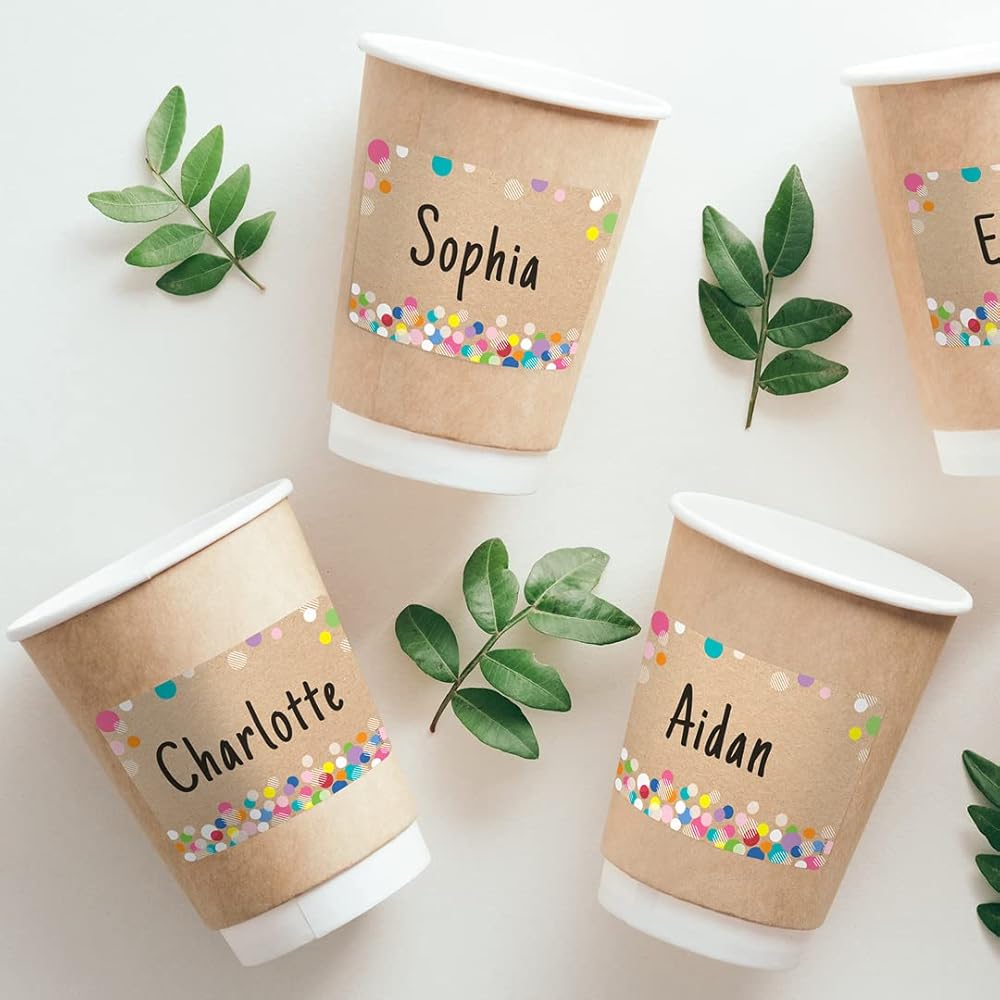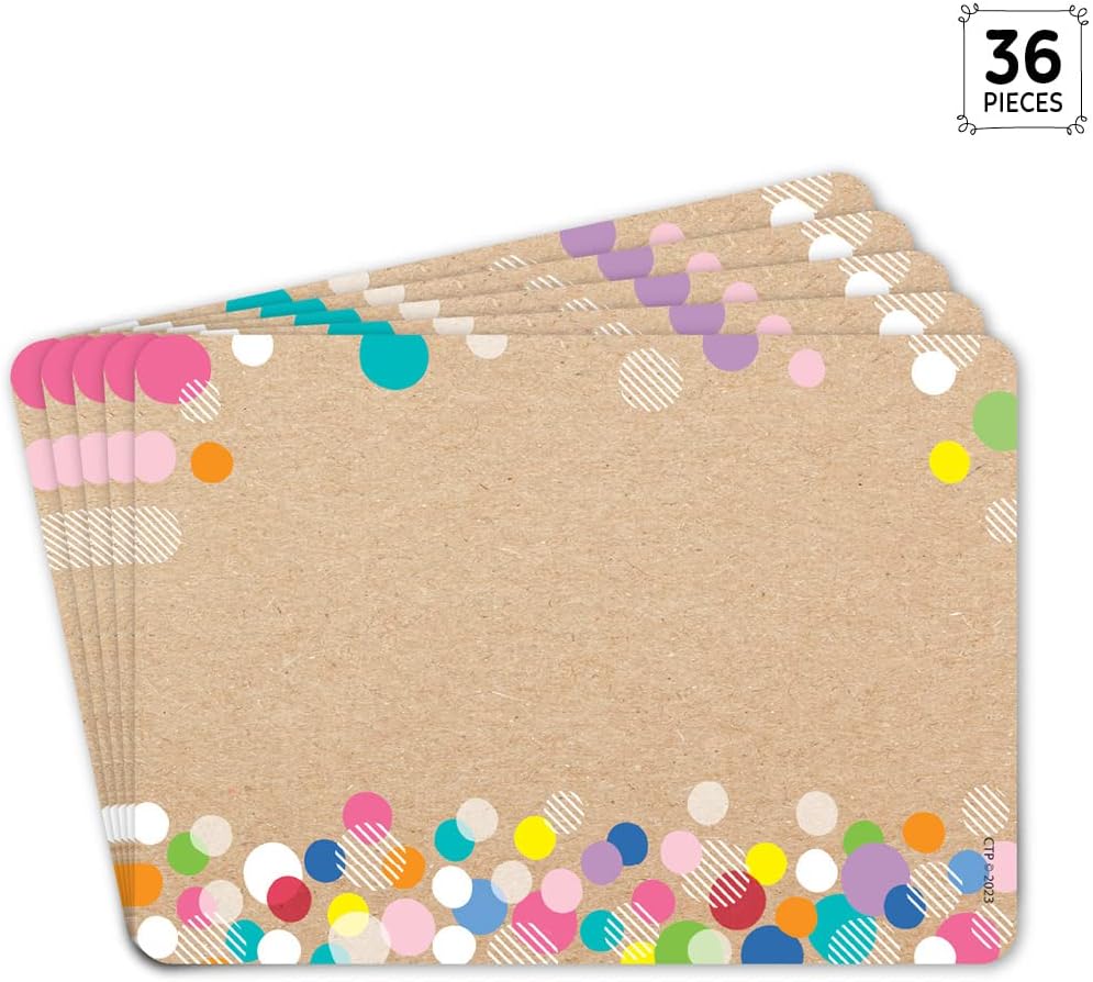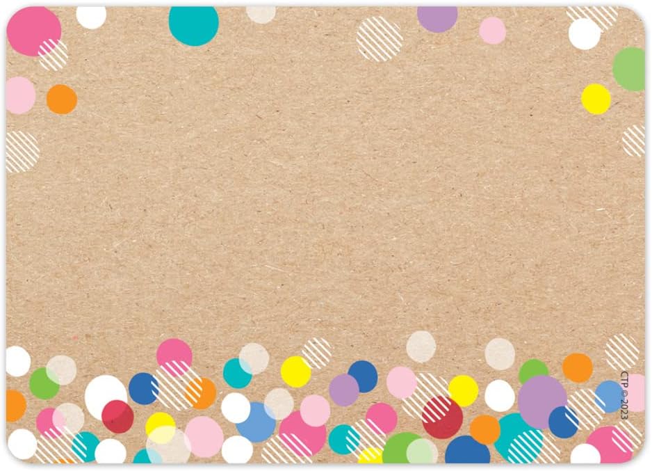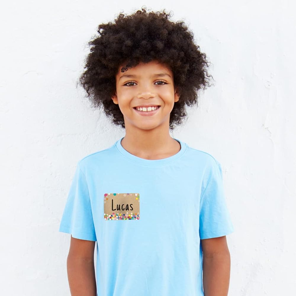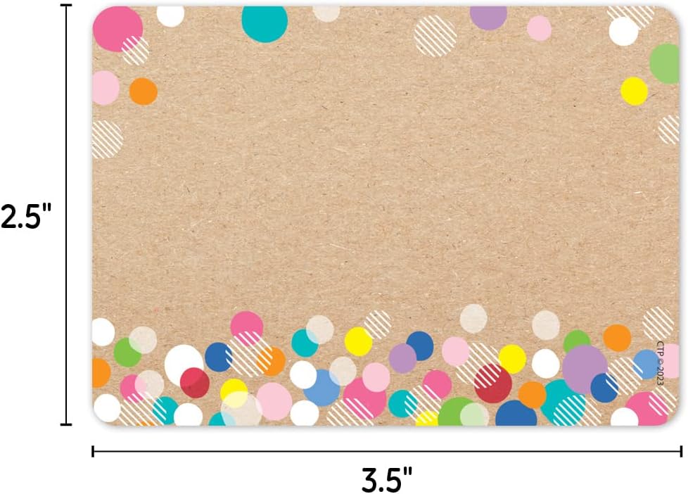 Make students feel right at home by putting these Dots on Black Name Tags on their desks, cubbies, or other school materials. Each label come with an adhesive backing that makes them easy to stick on for use in the classroom, on field trips, during orientation and more. The bright colorful design is sure to make any classroom feel fun and refreshing. Choose from more products in this style in the Dots on Black collection at CTP. Self-adhesive 3.5” x 2.5” each 36 name tags per package