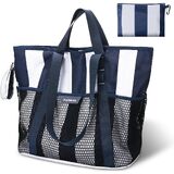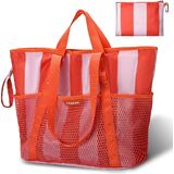 1.HIGH QUALITY: Our beach bag is made of high quality mesh, durable, sturdy, large capacity and spacious and oversized. Beach toys mesh beach bag is sandproof and easy to clean.