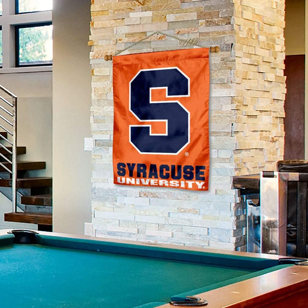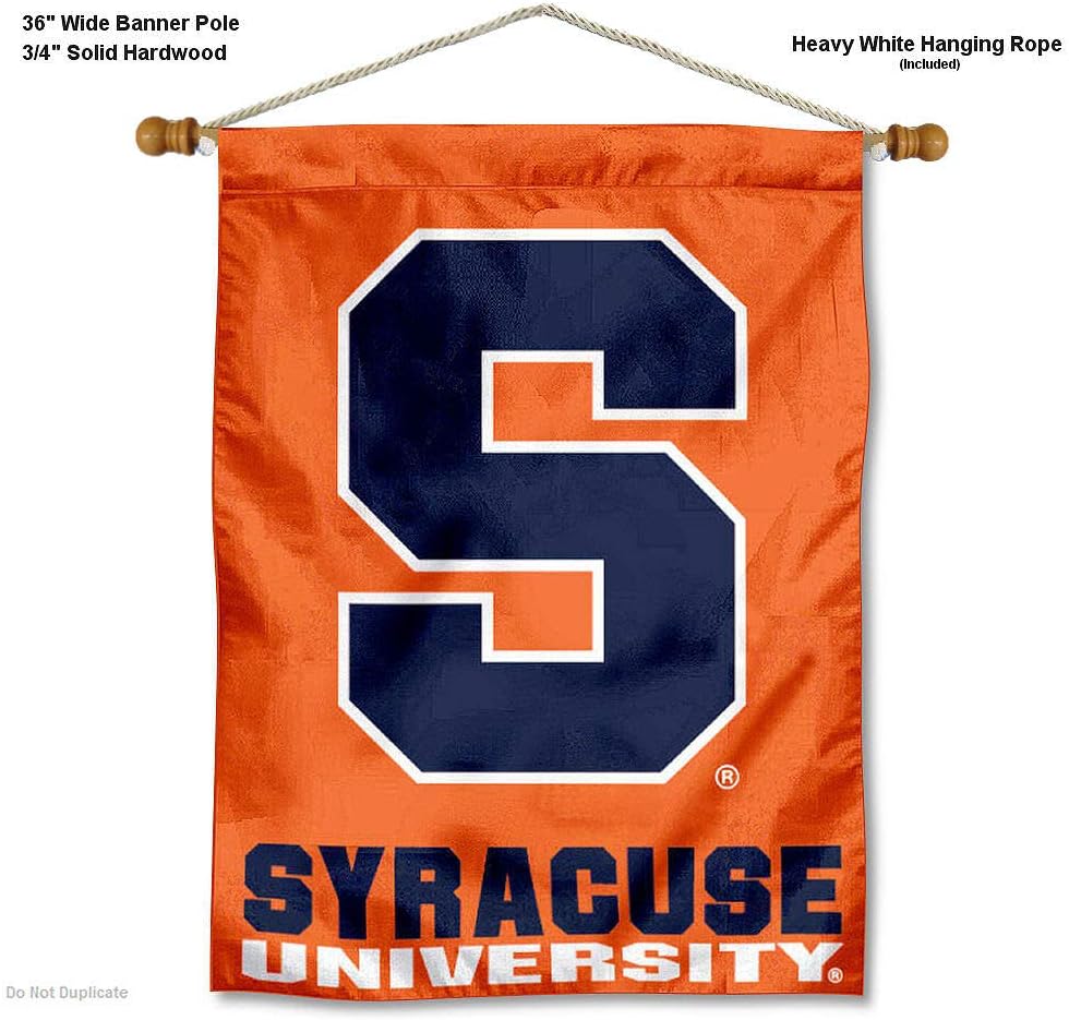 This Flag, Banner or Pennant measures a large 30 in x 40 in, is made of 1-ply Polyester with 2-ply bottom "School Name" panel, includes a 36" wide hardwood 3/4" diameter banner pole, and thick white hanging cord. These "Ready to Hang" Wall Banners are Officially Licensed and Team, College, or University Approved Approved and the Screen Printed logos are Viewable on Both Sides (Team Logo is Reversed on Opposite Side, School Name bottom panel is 2-Ply Double-Sided). The removable banner pole can fit sleeved flags up to 30" wide.