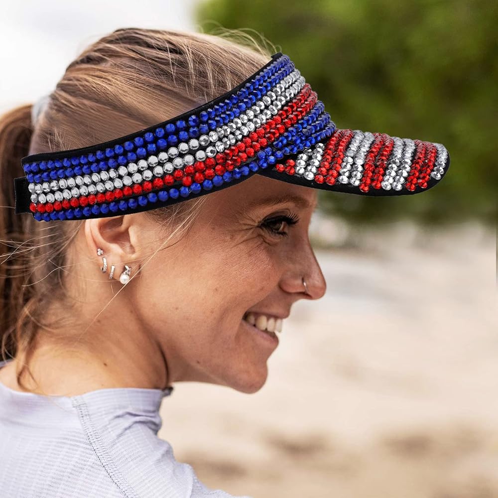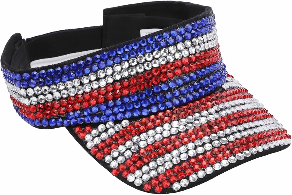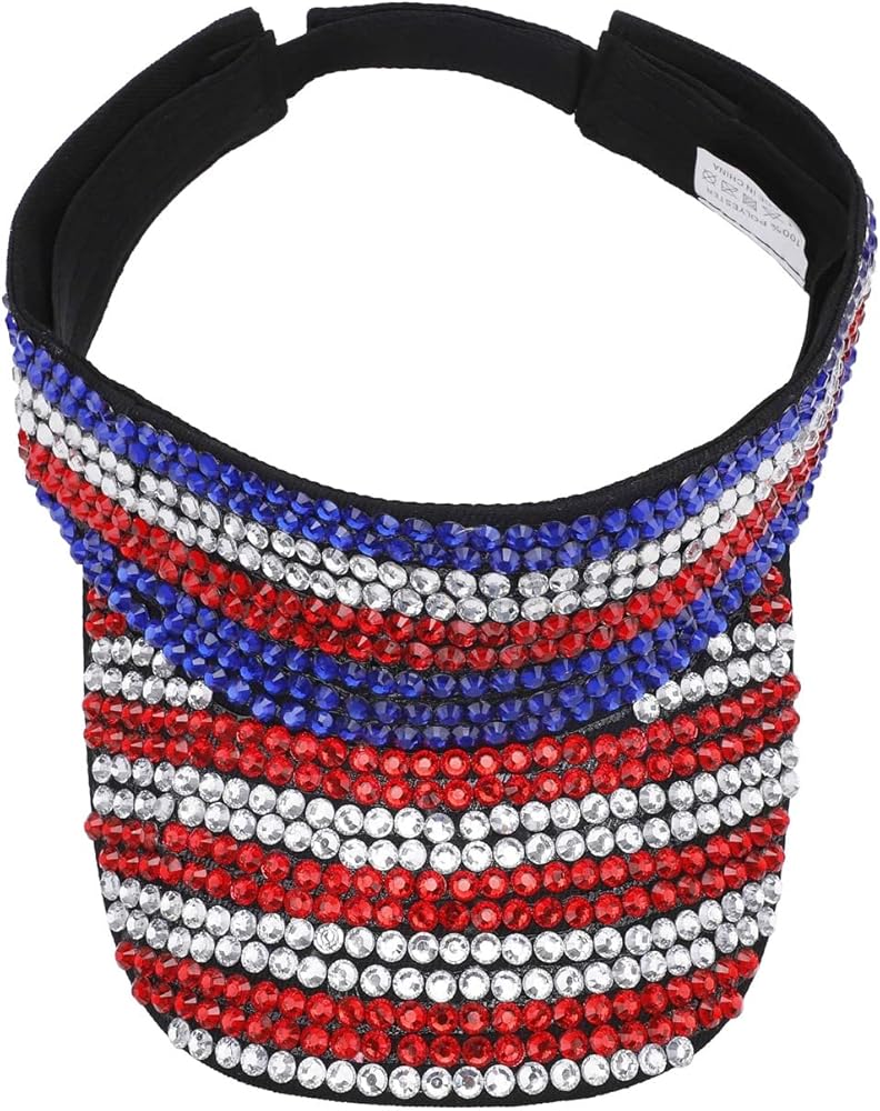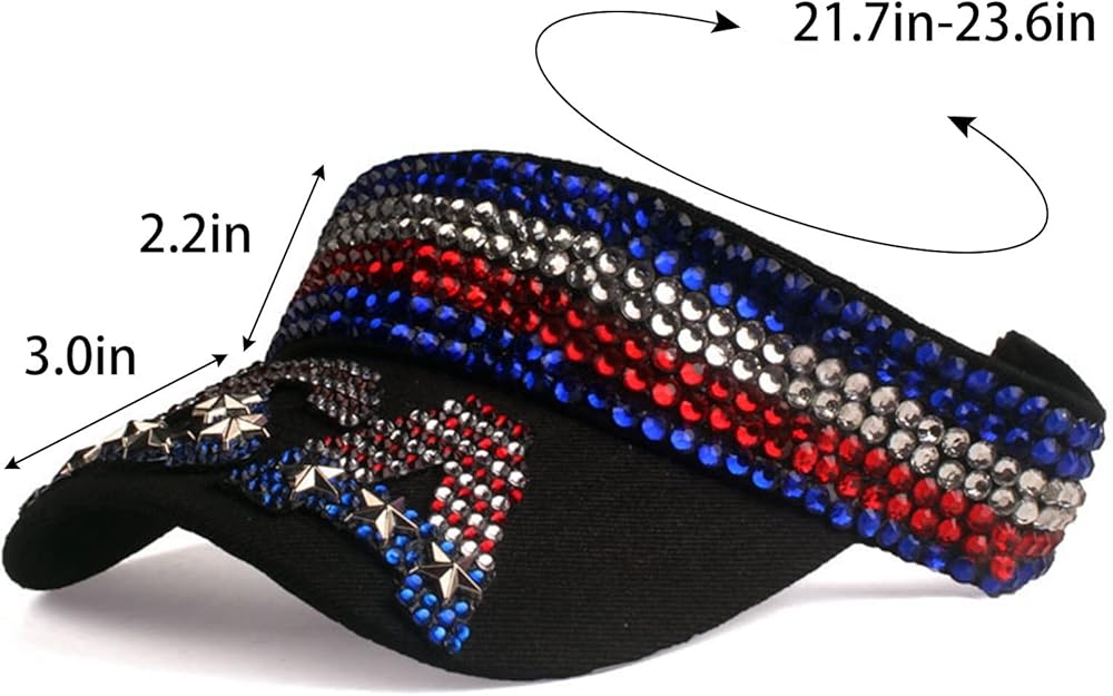 • 【Comfortable Breathable Material】:Our American flag visor is made of polyester and rhinestones,nice workmanship, lightweight and breathable, soft and comfortable, giving you a comfortable wearing experience;with soft edges and a fit design can keep sensitive scalp and eyes from sun and wind.