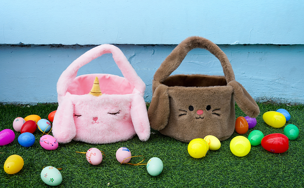 سلة أرنب عيد الفصح الرائعة: سلة أرنب عيد الفصح الخاصة بنا مصنوعة من مادة قطيفة عالية الجودة وآمنة على الأطفال وناعمة وصديقة للبشرة. سوف يستمتع طفلك بالبحث عن بيض عيد الفصح مع سلة الأرنب القطيفة الرائعة!