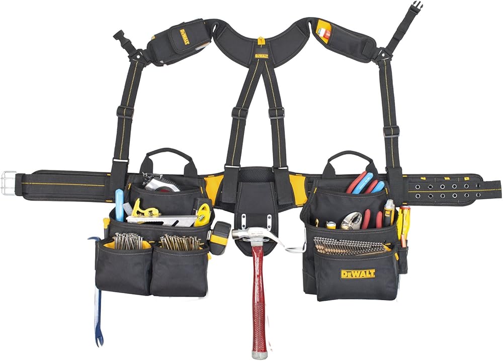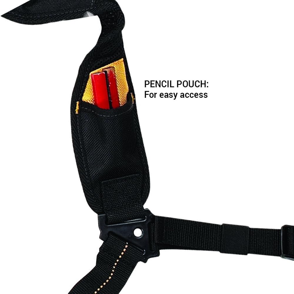 تساعد الحمالات المبطنة القابلة للتعديل بالكامل على توزيع الوزن بشكل متساوٍ مع 20 جيبًا وأكمام للأظافر والأجزاء والأدوات ومجموعات الأظافر وأقلام الرصاص وما إلى ذلك. يناسب مقاسات الخصر 29 انش - 46 انش.
