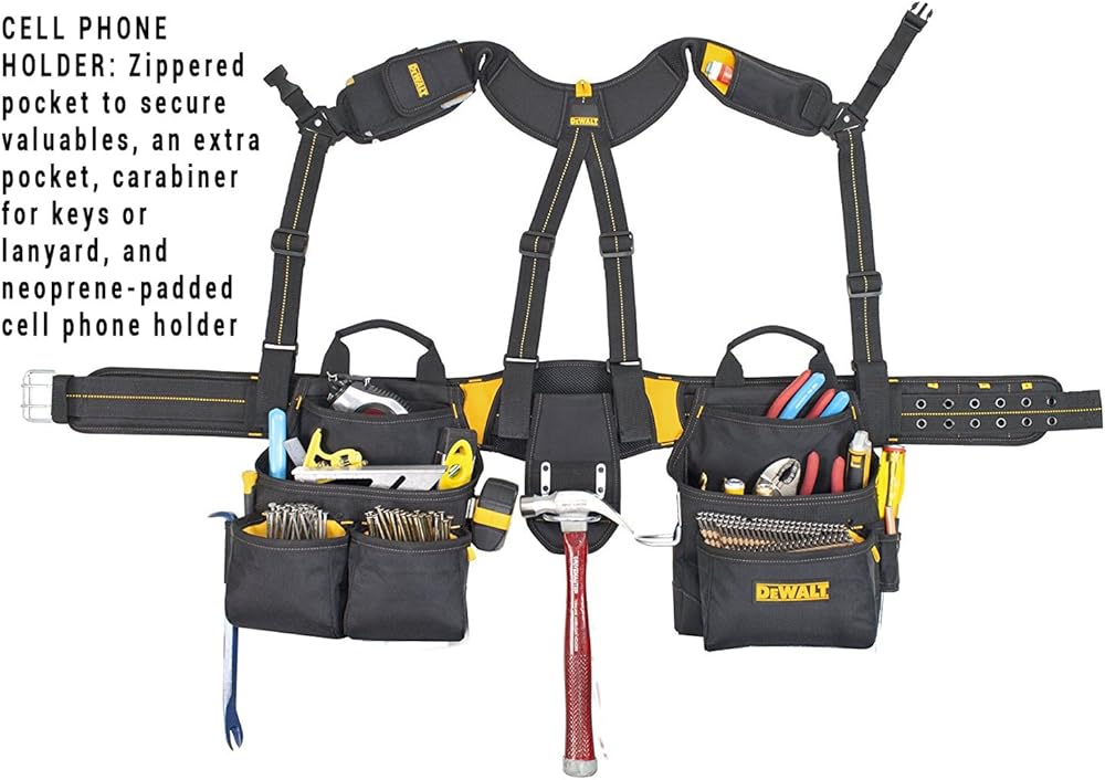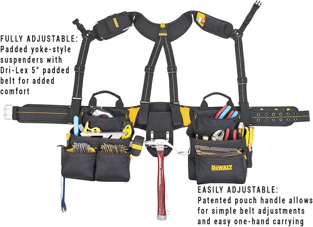 مريلة عمل قابلة للتعديل: تحتوي مريلة ديوالت المزودة بحمالات مبطنة قابلة للتعديل بالكامل للمساعدة في توزيع الوزن بالتساوي.
