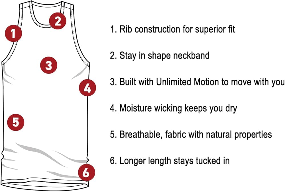 1. نسيج Tencel Lyocell: قميص داخلي رجالي بدون أكمام من WOLVERINE مصنوع من نسيج Tencel فائق النعومة، نسيج عالي الجودة مع امتصاص للرطوبة وتهوية ممتازة، مما يبقيك منتعشًا ومريحًا عند الارتداء.