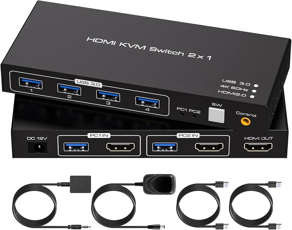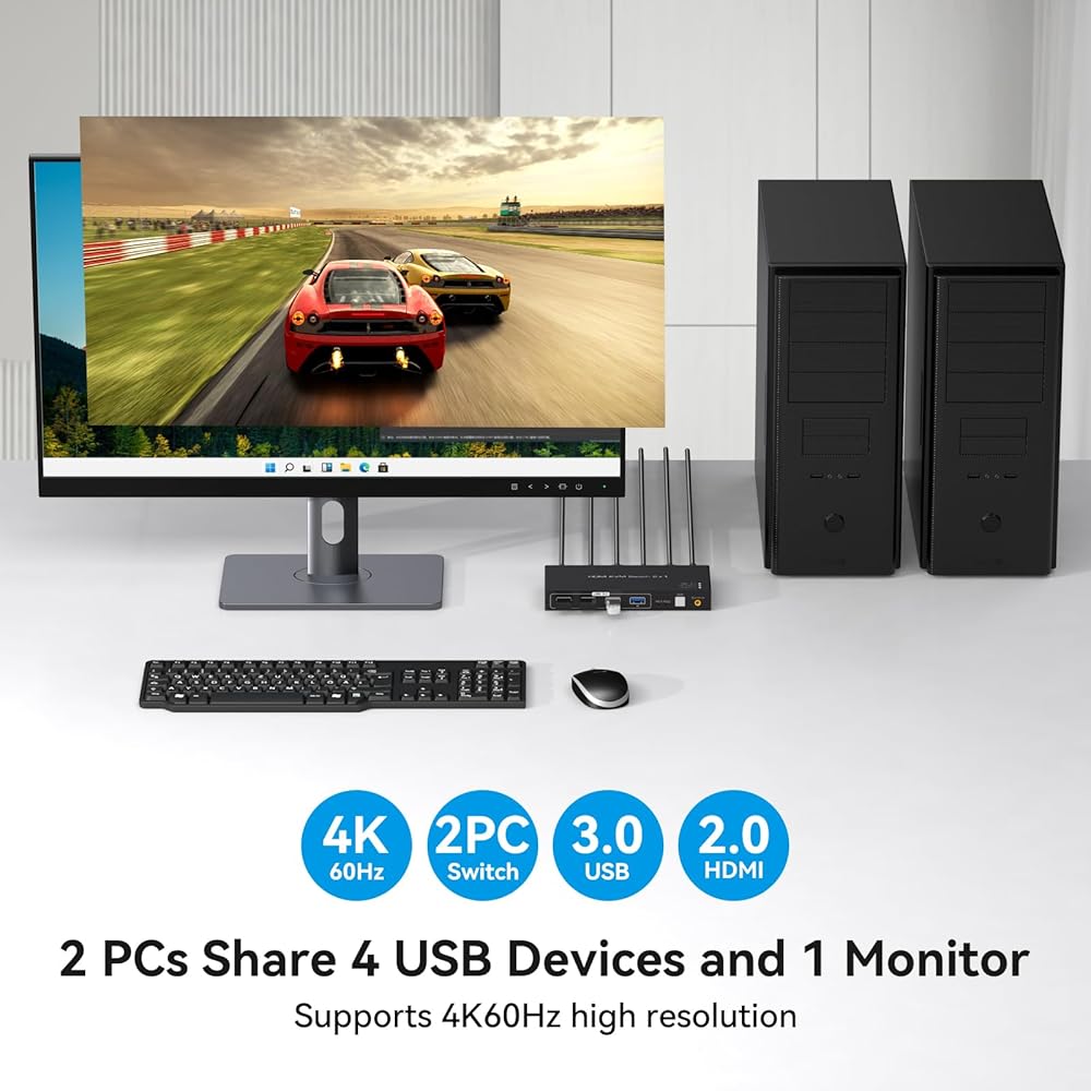 【مفتاح HDMI USB】مفتاح HDMI KVM هو منتج يجمع بين وظائف مفتاح HDMI ومفتاح USB. فهو لا يسمح لجهازي كمبيوتر بمشاركة شاشة واحدة فحسب، بل يسمح أيضًا لجهازي كمبيوتر بمشاركة أربعة أجهزة طرفية USB، مثل الماوس ولوحة المفاتيح والطابعة وقرص U وما إلى ذلك. قم بالتبديل بسرعة بنقرة واحدة لتجنب فصل القابس والتوصيل، وتحسين كفاءة العمل و تجربة الألعاب.