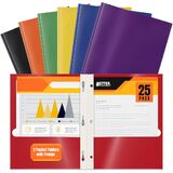 صُنع ليدوم طويلاً: ورق مقوى عالي التحمل بلمسة نهائية لامعة (غطاء 250 جرامًا للمتر المربع/90 رطلاً) مع حواف مطوية ومعززة للاستخدام لفترة أطول والحماية من الانسكابات واللطخات و3 مثبتات معدنية لتأمين التقارير المثقوبة
