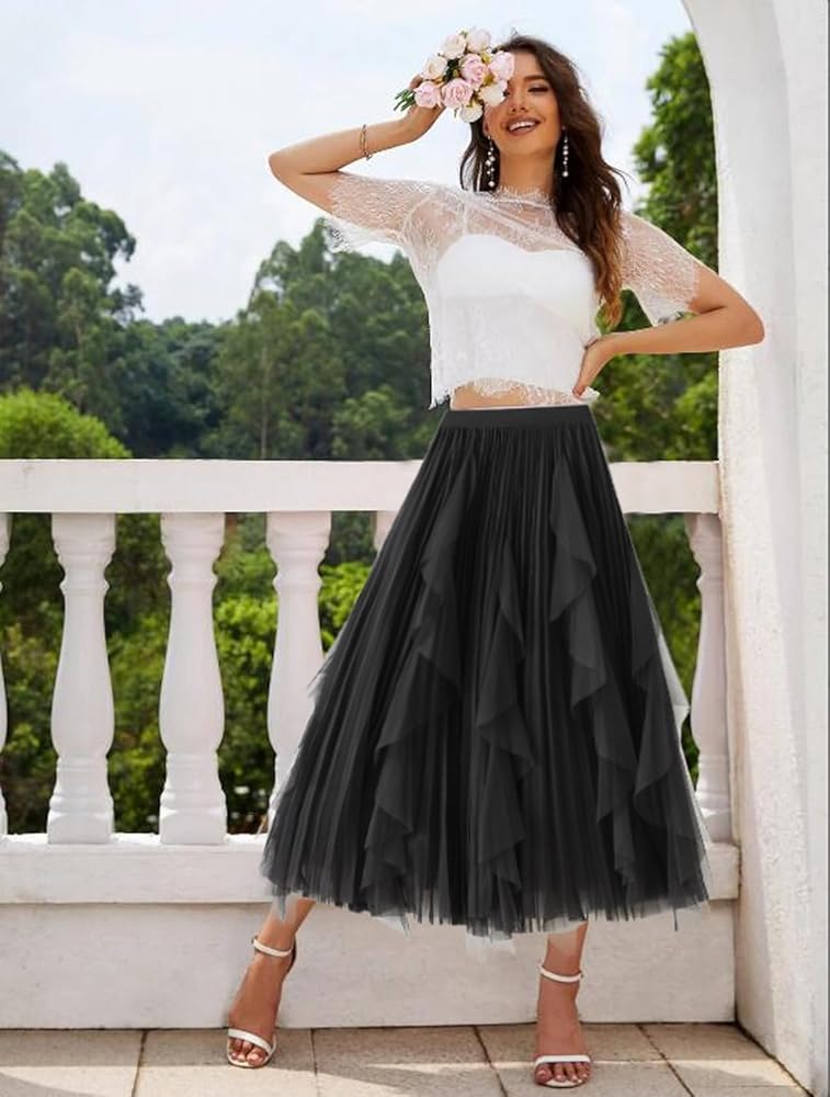 ❀تصميم فريد: تنورة نسائية متوسطة الطول، خصر عالٍ، مطوية، على شكل حرف A، لون كلاسيكي ثابت، حاشية من التل المتدلي ترفرف بلطف مع جسمك المتحرك الساحر للغاية وشكل الظهر، مثل نوع من المناظر الجميلة. ويوفر حزام الخصر المرن راحة وملاءمة، ويمكن أن يناسب أنواع وأحجام الجسم المختلفة. هذه التنورة الخيالية هي قطعة يجب اقتناؤها في خزانة ملابسك.