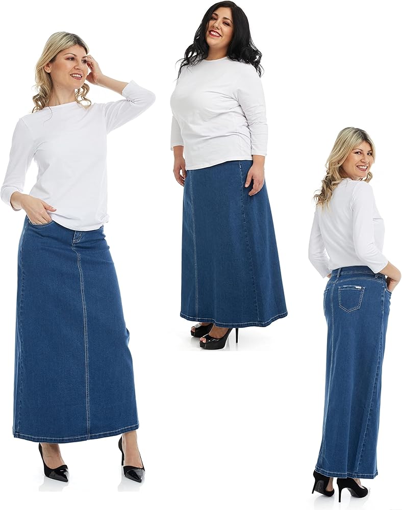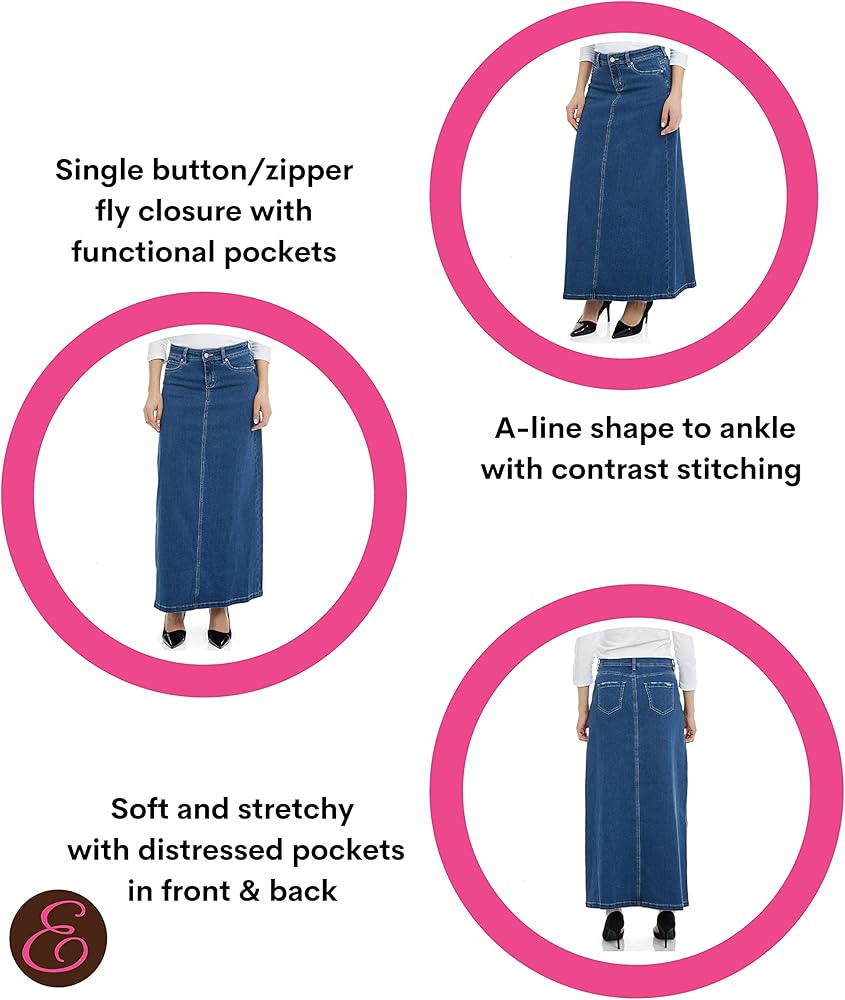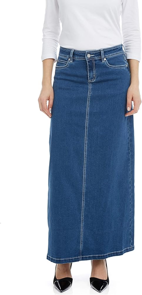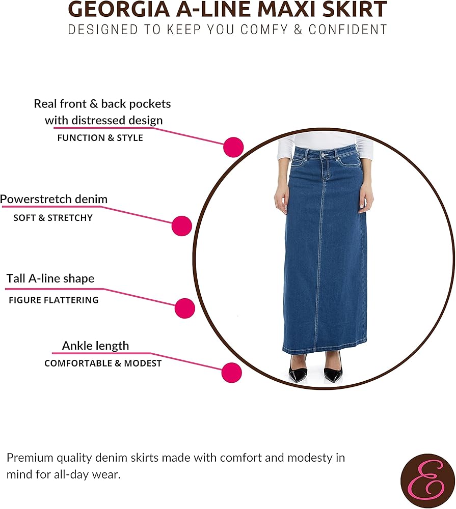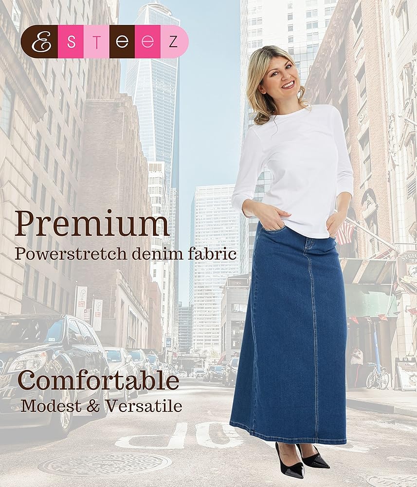 تنورة ESTEEZ النسائية الطويلة من الدينيم طويلة على شكل حرف A قابلة للتمدد من الجينز جورجيا