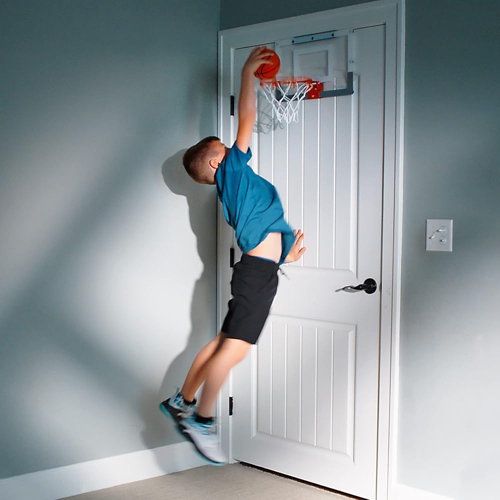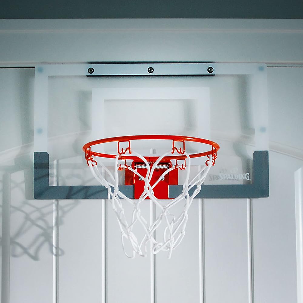 No court, no problem. This over-the-door unit lets you sink shots from your office chair or living room couch. A quarter-scale replica of the official on-court backboard, it has a clear, durable board and steel breakaway rim.