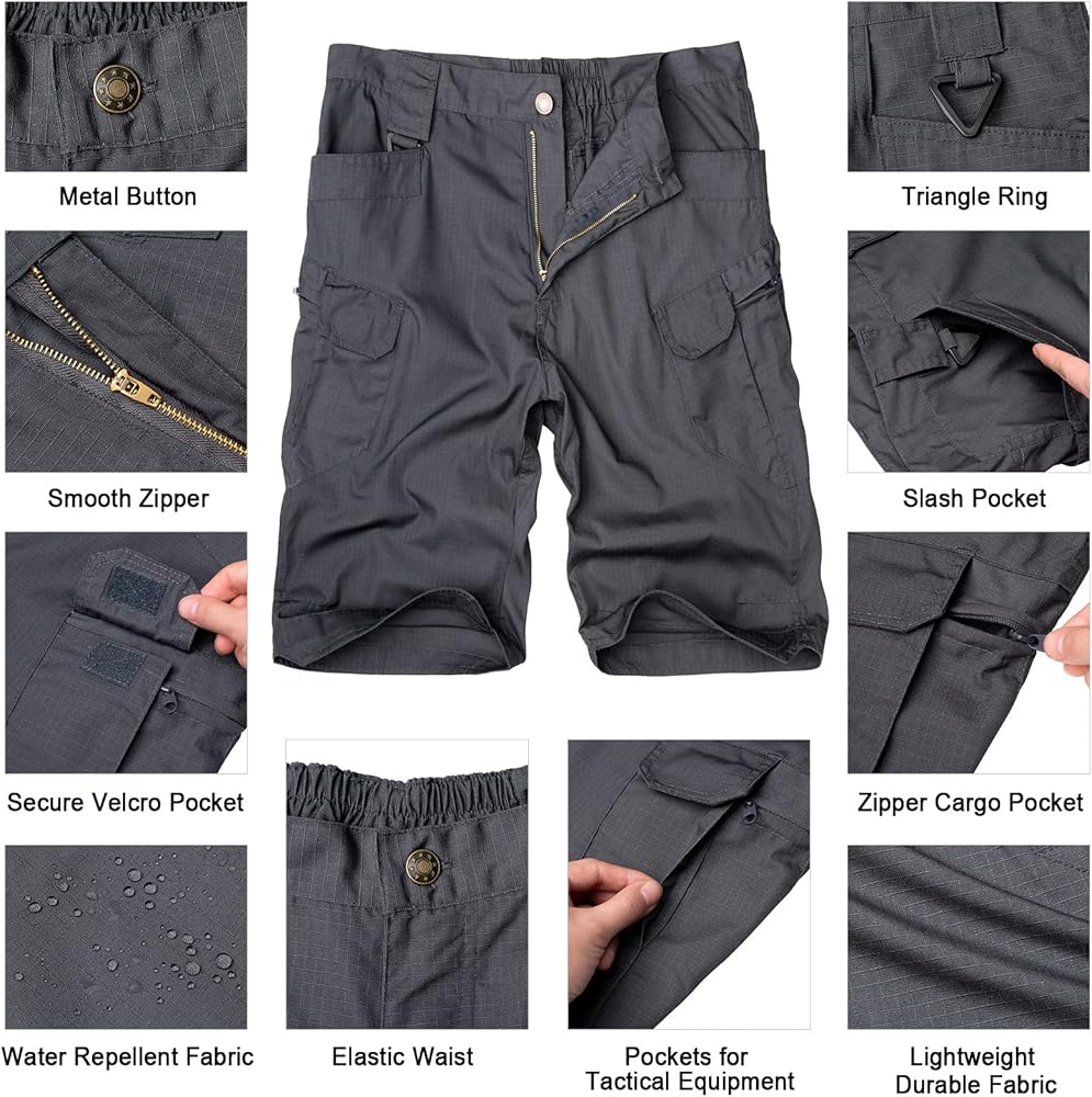 • Mens Hiking Shorts use tactical performance design, equipped with 2 flap pockets with velcro, 2 back flap pockets with 2 small pockets, and 2 slash pockets for easy-access storage.