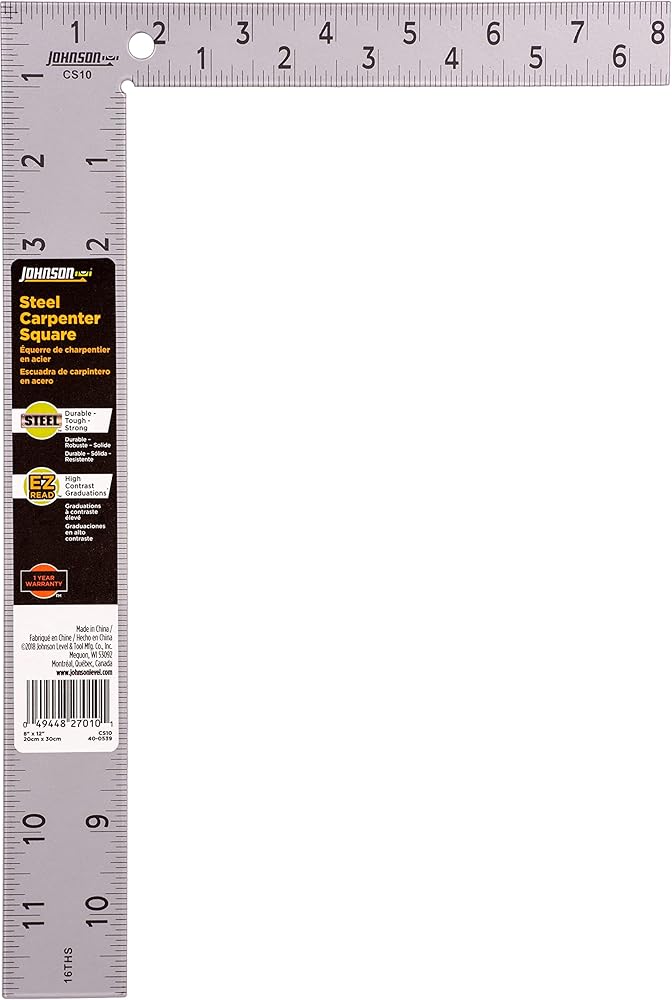 جونسون يتميز مربع النجار مقاس 8 انش × 12 انش بأرقام اي زد ريد™ الحرارية المربوطة وتدرجات 1/8 انش لسهولة الرؤية. كما أن هيكله الفولاذي المتين يجعل المربع متينًا بما يكفي لتحمل أسوأ سوء استخدام في موقع العمل.